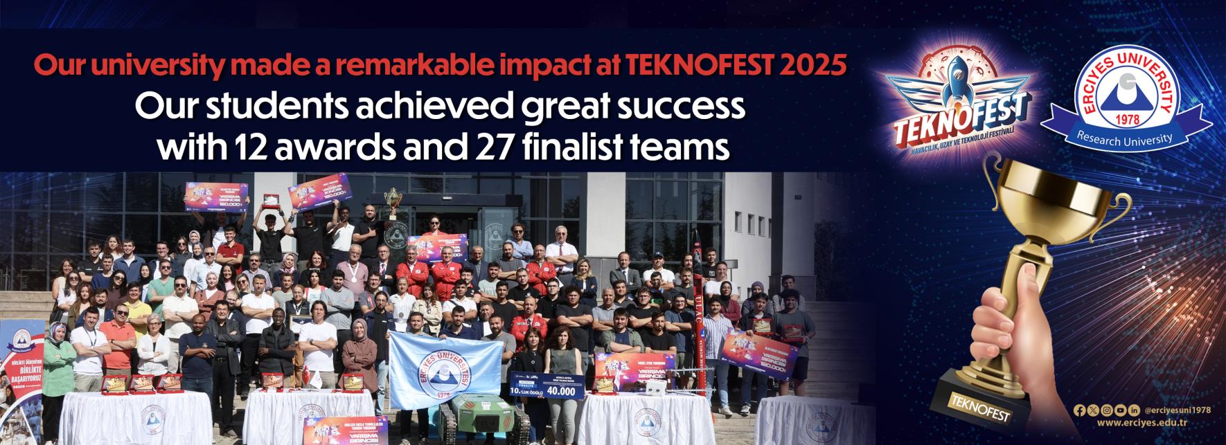 Organized under the leadership of the Ministry of Industry and Technology and the Türkiye Technology Team Foundation (T3 Foundation), and with our university as one of its stakeholders, the results of the Aviation, Space, and Technology Festival—TEKNOFEST 2025 —have been announced. According to the published results, ERU students achieved success in many categories. In this context, 12 teams from our university received awards, while 27 teams qualified for the finals.