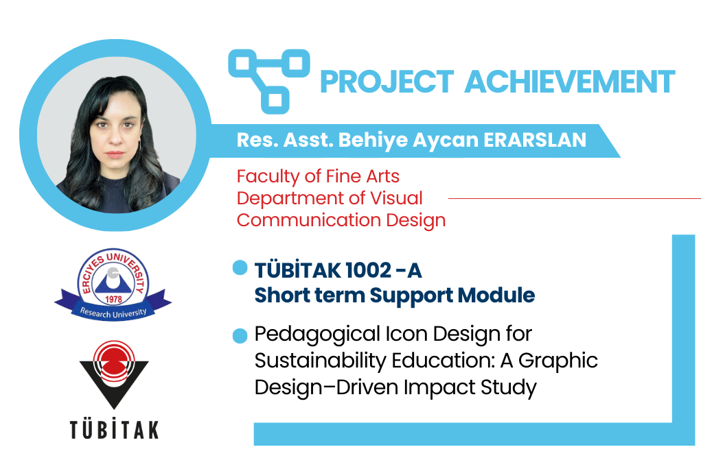 The project titled “Pedagogical Icon Design for Sustainability Education: A Graphic Design–Driven Impact Study,” led by Res. Asst. Behiye Aycan ERARSLAN from the ERU Department of Visual Communication Design of the Faculty of Fine Arts, has been awarded funding by TÜBİTAK under the TUBİTAK 1002-A Short-term Support Module. Project team includes Assoc. Prof. Dr. Şükrü Taner AZGIN, from the ERU Department of Environmental Engineering of the Faculty of Engineering, as a advisor Assoc. Prof. Dr. Esra Kızılay, from the ERU Department of Science Education of the Faculty of Education, and Asst. Prof. Aydan ERARSLAN TURHAN, from Anadolu University, as researcher.