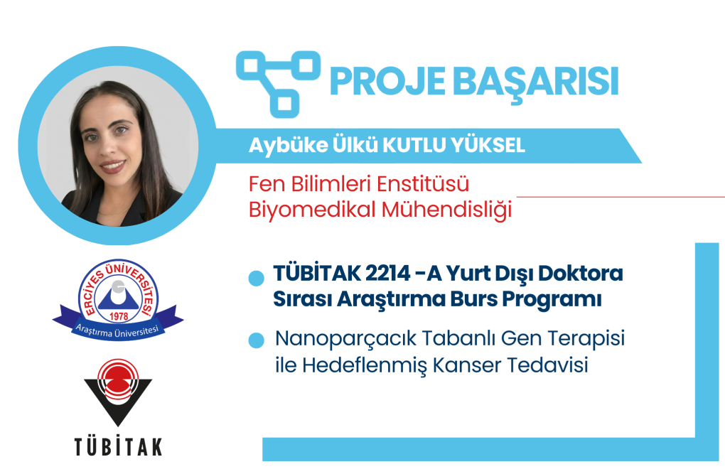 2214-A Yurt Dışı Doktora Sırası Araştırma Burs Programı kapsamında, yürütücülüğünü Üniversitemiz Fen Bilimleri Enstitüsü Biyomedikal Mühendisliği Anabilim Dalı doktora öğrencisi Aybüke Ülkü KUTLU YÜKSEL'in yapacağı, "Nanoparçacık Tabanlı Gen Terapisi ile Hedeflenmiş Kanser Tedavisi” başlıklı proje destek almaya hak kazanmıştır. Yurt içi danışmanlığını Mühendislik Fakültesi Biyomedikal Mühendisliği Bölümü öğretim üyesi Doç. Dr. Ömer AYDIN'ın yapacağı proje, Leiden Akademik İlaç Araştırma Merkezi (Leiden Üniversitesi, Hollanda) bünyesinde Prof. Dr. Matthias BARZ danışmanlığında gerçekleştirilecektir.