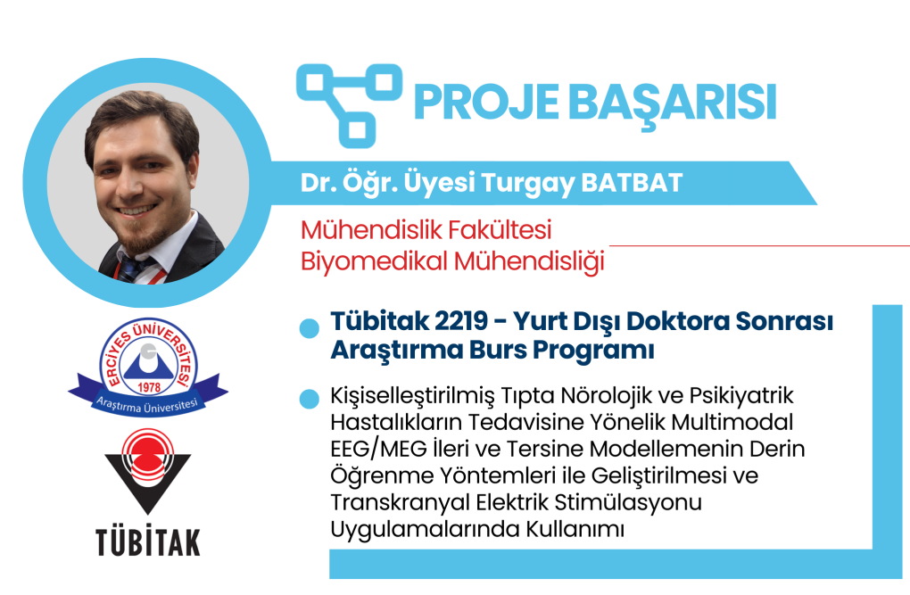 TÜBİTAK-2219 Yurt Dışı Doktora Sonrası Araştırma Burs Programı kapsamında, yürütücülüğünü Üniversitemiz Mühendislik Fakültesi Biyomedikal Mühendisliği öğretim üyesi Dr. Öğr. Turgay BATBAT'ın yapacağı "Kişiselleştirilmiş Tıpta Nörolojik ve Psikiyatrik Hastalıkların Tedavisine Yönelik Multimodal EEG/MEG İleri ve Tersine Modellemenin Derin Öğrenme Yöntemleri ile Geliştirilmesi ve Transkranyal Elektrik Stimülasyonu Uygulamalarında Kullanımı" başlıklı proje destek almaya hak kazanmıştır. Proje, Münster Üniversitesi (Almanya) bünyesinde Prof. Dr. Carsten Wolters'ın danışmanlığında gerçekleştirilecektir.