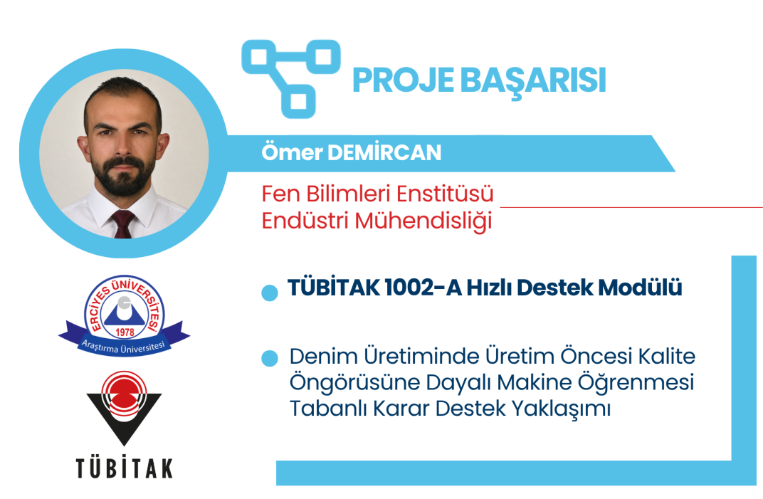 Üniversitemiz Fen Bilimleri Enstitüsü Endüstri Mühendisliği Anabilim Dalı doktora öğrencisi Ömer DEMİRCAN'ın yürütücü; Mühendislik Fakültesi Endüstri Mühendisliği Bölümü öğretim üyesi Prof. Dr. Ercan ŞENYİĞİT'in danışman olduğu "Denim Üretiminde Üretim Öncesi Kalite Öngörüsüne Dayalı Makine Öğrenmesi Tabanlı Karar Destek Yaklaşımı” başlıklı proje TÜBİTAK 1002-A Hızlı Modülü kapsamında desteklenmeye hak kazanmıştır.
