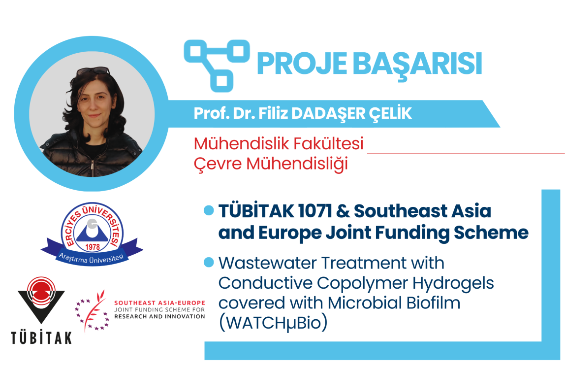 Üniversitemiz Mühendislik Fakültesi Çevre Mühendisliği Bölümü öğretim üyesi Prof. Dr. Filiz DADAŞER ÇELİK’in yürütücü; Çevre Mühendisliği Bölümü öğretim üyesi Prof. Dr. Nuray ATEŞ ve Bilgisayar Mühendisliği Bölümü öğretim üyesi Doç. Dr. Mete ÇELİK’in araştırmacı olduğu, Türkiye, İsviçre ve Tayland ortaklığında hazırlanan "Wastewater Treatment with Conductive Copolymer Hydrogels covered with Microbial Biofilm (WATCHµBio)" başlıklı çoklu işbirliği projesi TÜBİTAK 1071 - Uluslararası Araştırma Fonlarından Yararlanma Kapasitesinin ve Uluslararası Ar-Ge İşbirliklerine Katılımın Arttırılmasına Yönelik Destek Programı ve Southeast Asia and Europe Joint Funding Scheme (SEA-EU JFS) çağrısı kapsamında desteklenmeye hak kazanmıştır.