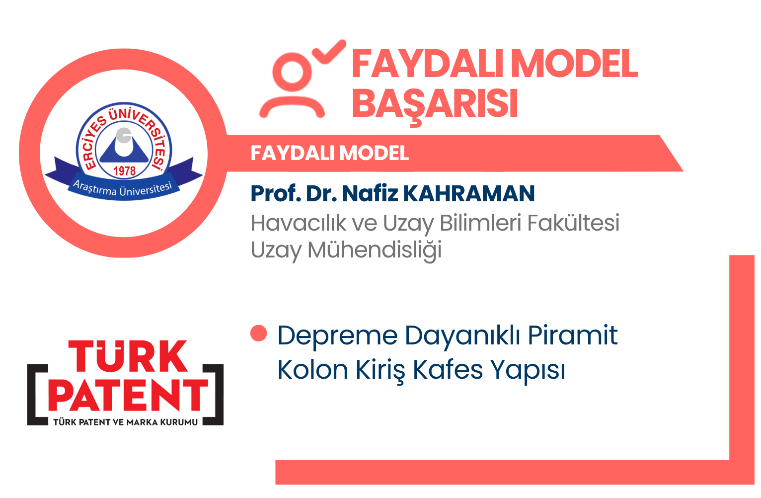 Üniversitemiz Havacılık ve Uzay Bilimleri Fakültesi Uzay Mühendisliği Bölümü öğretim üyesi Prof. Dr. Nafiz KAHRAMAN tarafından geliştirilen "Depreme Dayanıklı Piramit Kolon Kiriş Kafes Yapısı” başlıklı faydalı model Türk Patent ve Marka Kurumu tarafından tescil edilmiştir.