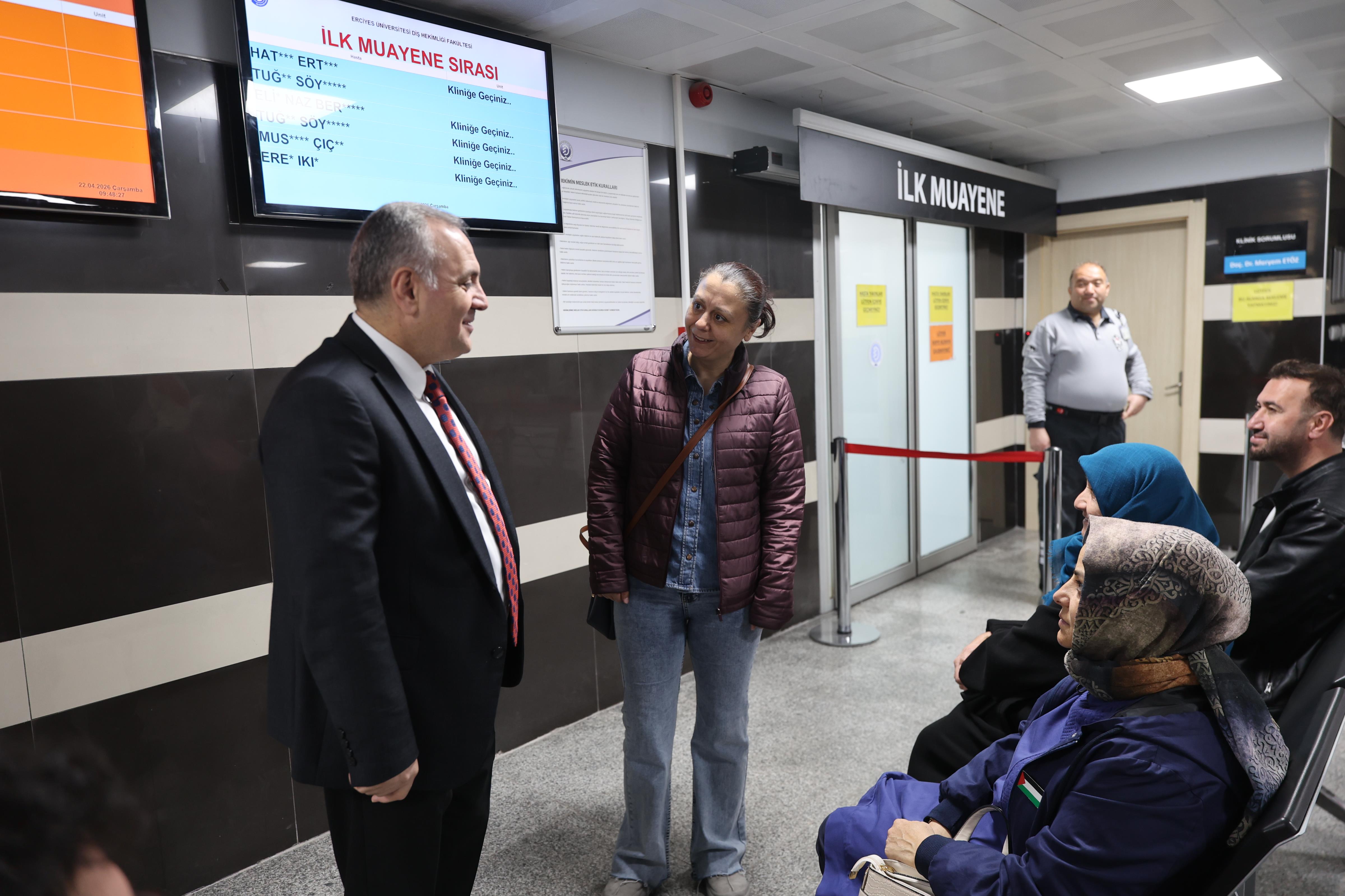 Tek tek klinikleri gezen Rektörümüz Prof. Dr. Altun, tedavi için hastaneye gelen hastalar ile de sohbet ederek, geçmiş olsun dileklerini iletti.