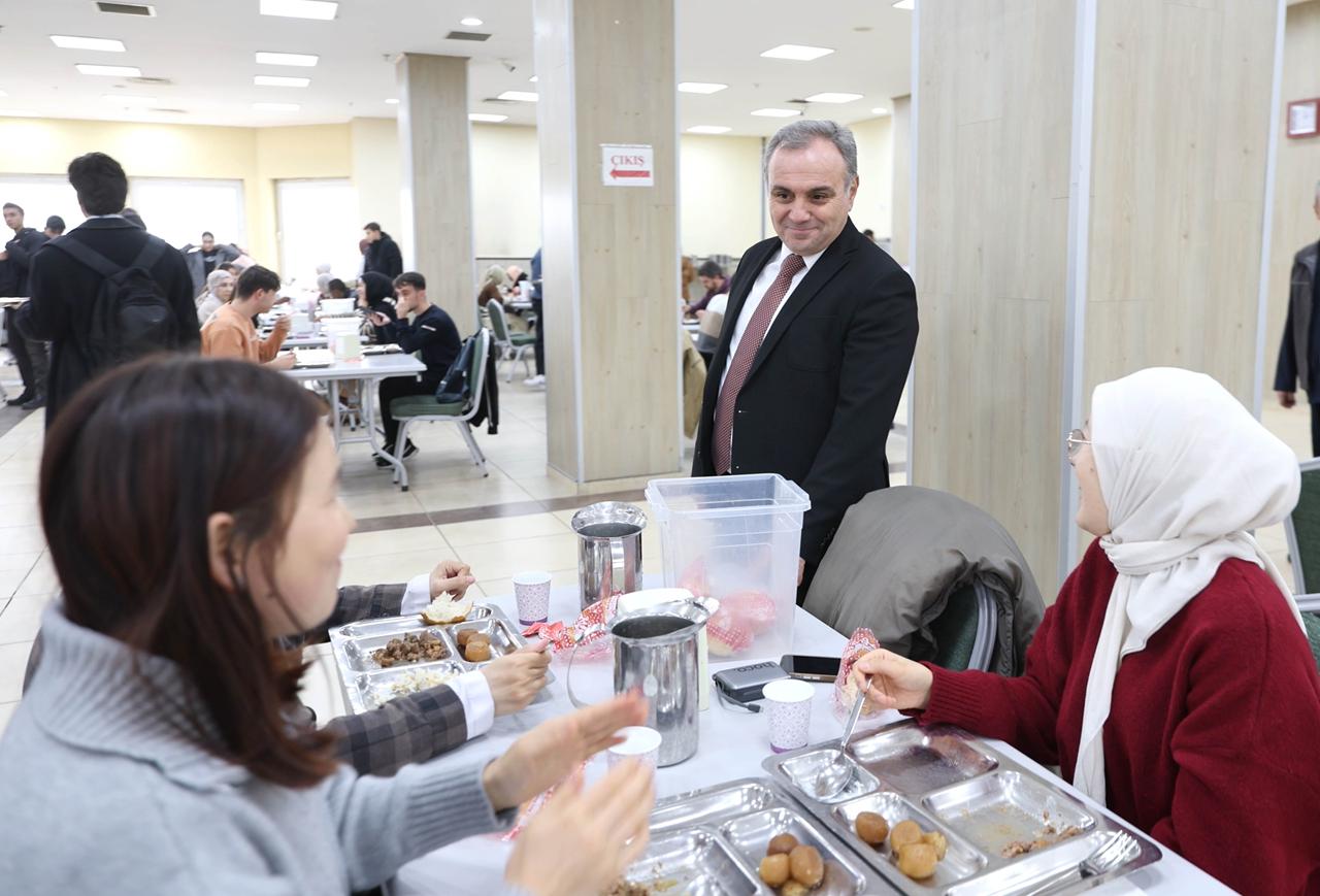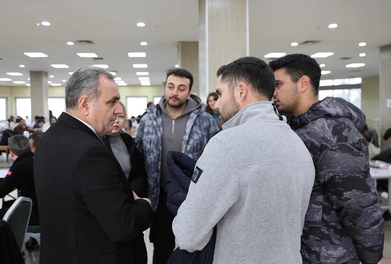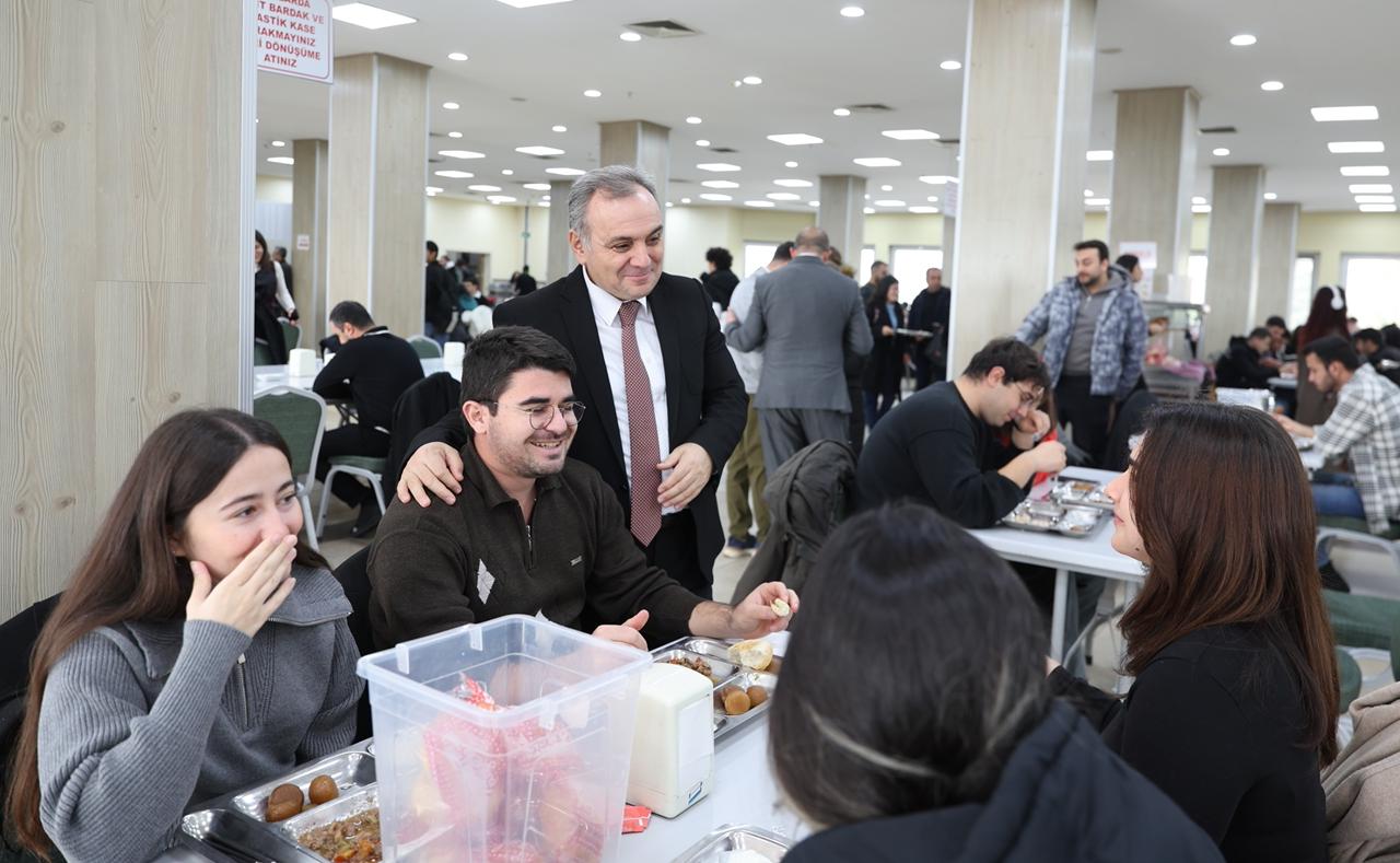 Öğrenci yemekhanesinde öğrenciler ile bir araya gelen Rektörümüz Prof. Dr. Fatih Altun, yemek öncesi masaları tek tek dolaşarak öğrenciler ile sohbet etti.