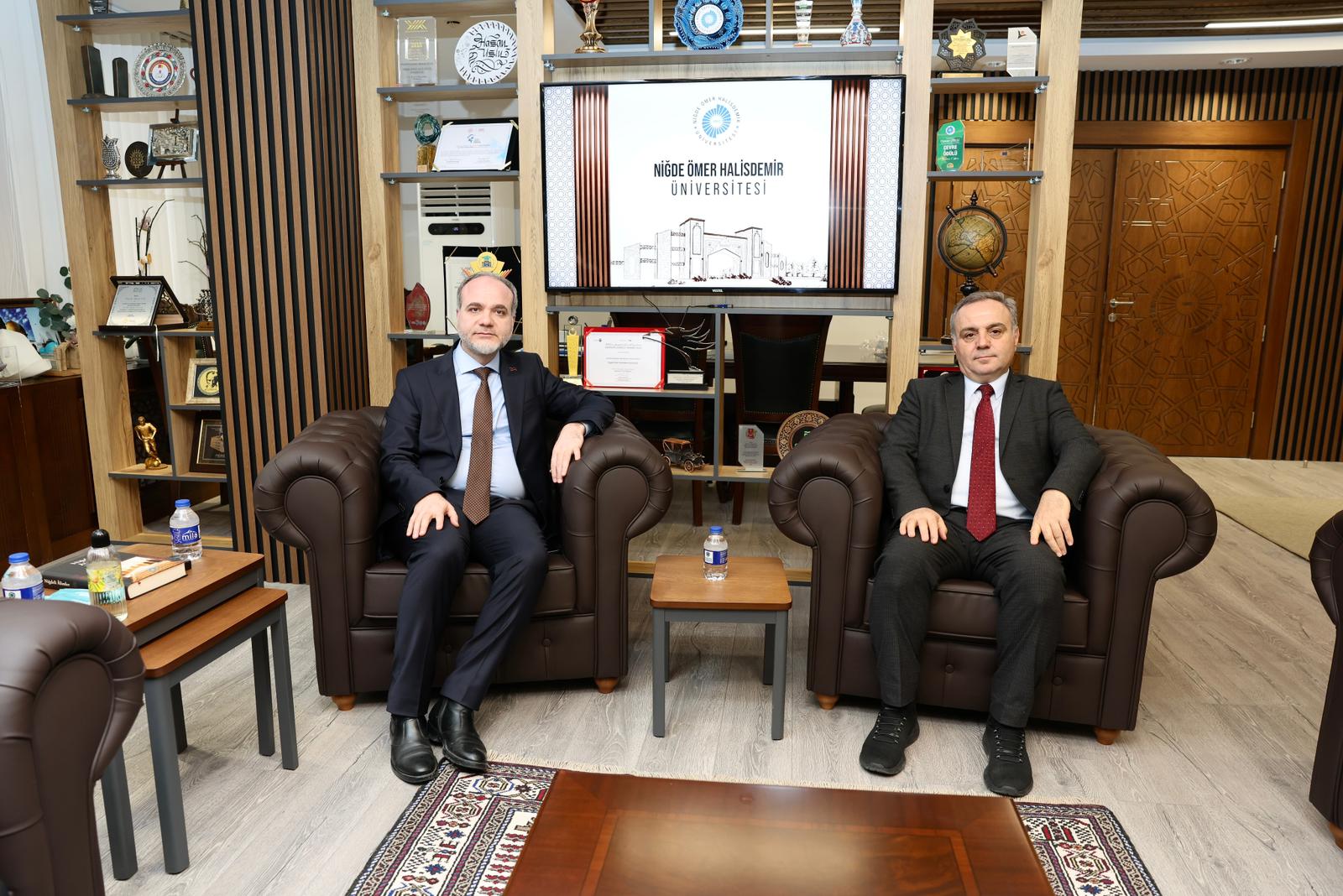 Rektörümüz Prof. Dr. Fatih Altun, Genel Sekreterimiz Prof. Dr. İbrahim Narin ile birlikte Niğde Ömer Halis Demir Üniversitesi Rektörü Prof. Dr. Hasan Uslu’yu makamında ziyaret etti.