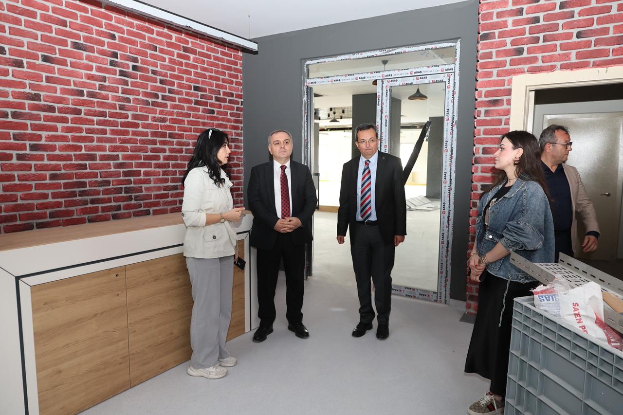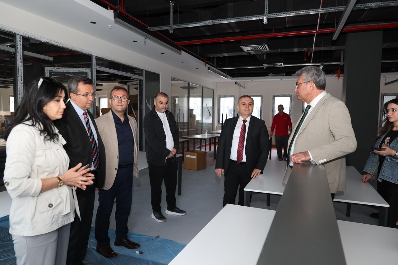 Rektörümüz Prof. Dr. Fatih Altun, Rektör Yardımcımız Prof. Dr. Oktay Özkan ve Genel Sekreterimiz Prof. Dr. İbrahim Narin ve Genel Sekreter Yardımcımız Dr. Oktay Musa Kayırga ile birlikte ilk olarak yenileme çalışmalarında sona gelinen kütüphane binasını ziyaret etti.