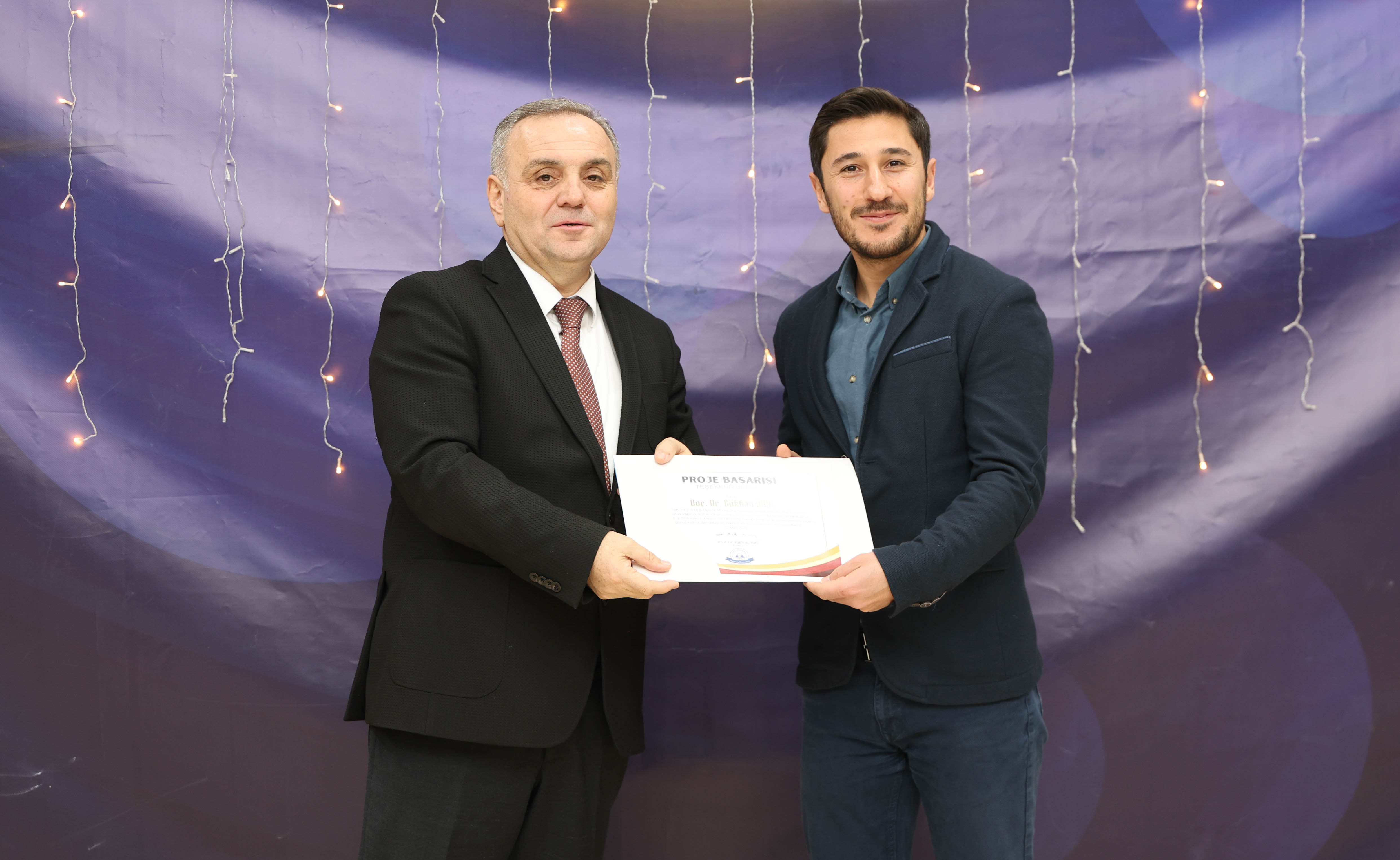 Konuşmasının ardından Rektörümüz Prof. Dr. Fatih Altun, başarılı çalışmalara imza atan akademisyenlere teşekkür belgesi takdiminde bulundu.