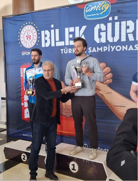 Şampiyonasına katılan, 59 Üniversite 252 Sporcu arasından Üniversitemiz Bilek Güreşi Erkek