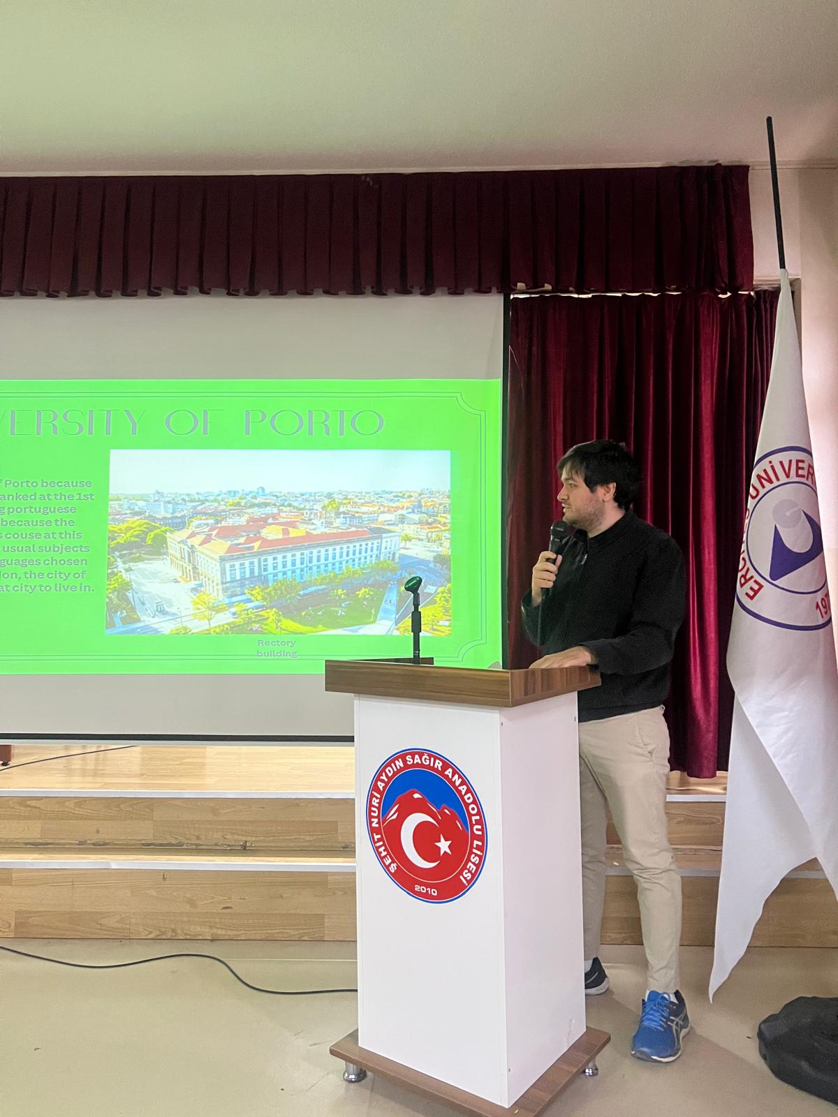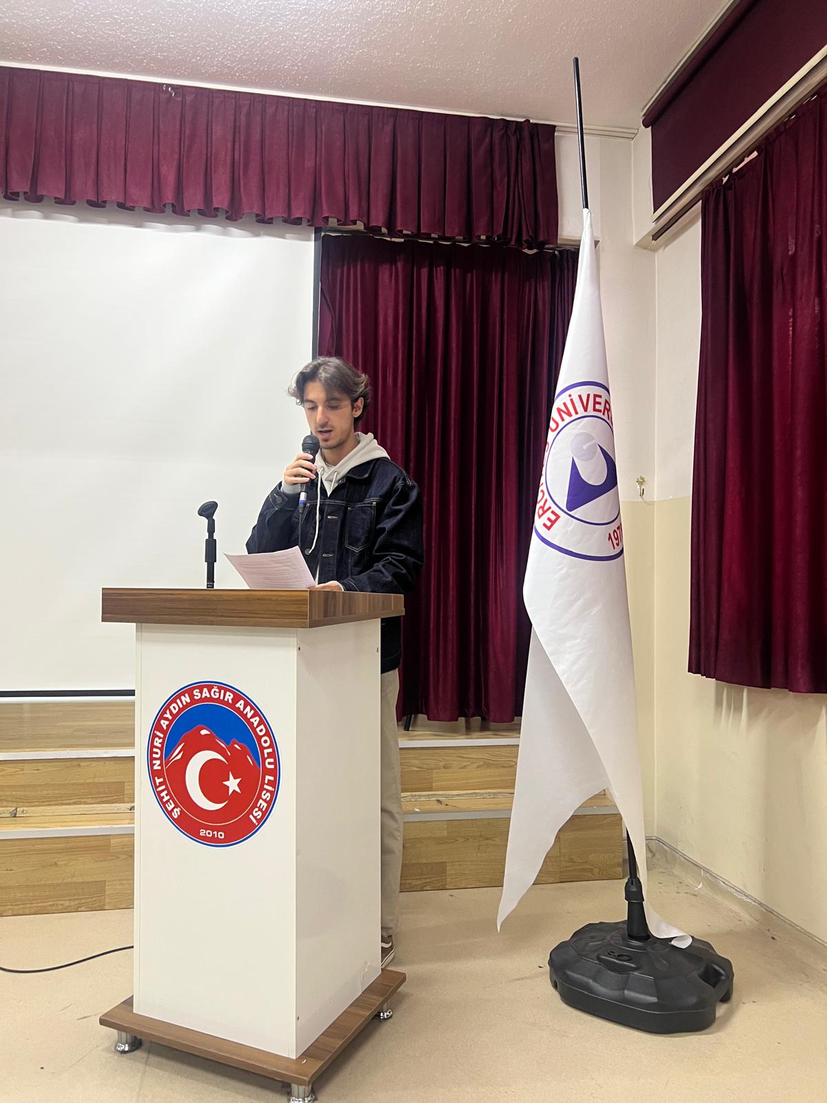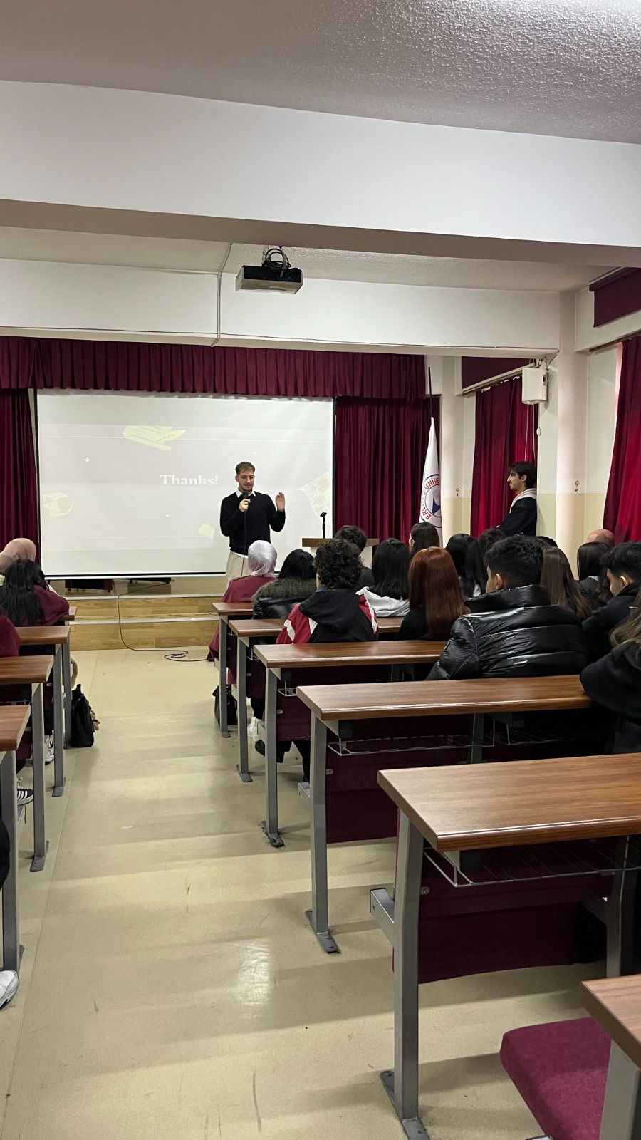 Dış İlişkiler Ofisi, uluslararası öğrencileriyle birlikte Şehit Nuri Aydın Sağır Anadolu Lisesi İngilizce dil sınıfı öğrencileriyle bir söyleşi programı gerçekleştirdi. Etkinlik kapsamında uluslararası öğrenciler, “Yurtdışında Eğitim Deneyimi” teması altında kendi akademik yolculuklarını, karşılaştıkları fırsatları ve kültürel uyum süreçlerini lise öğrencileriyle paylaştı.