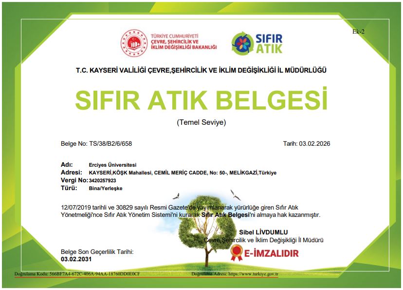 Üniversitemiz, Sıfır Atık Yönetmeliği kapsamında yürütülen çalışmalar sonucunda sıfır atık belge