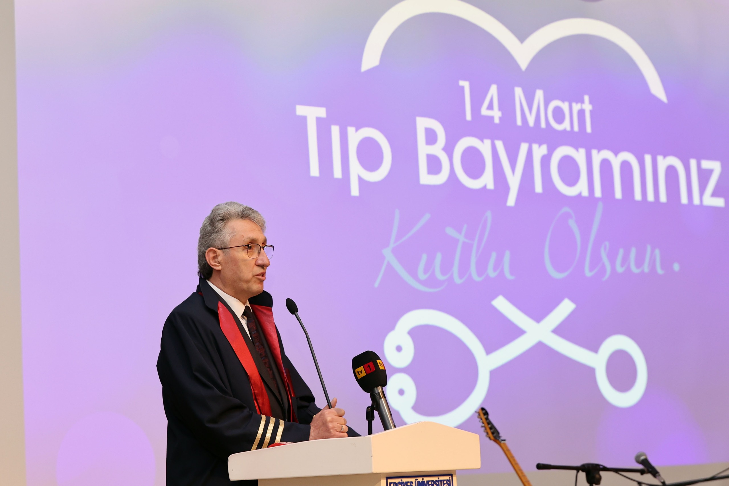 Tıp Fakültesi Dekanı Prof. Dr. İsmail Dursun ise konuşmasında 14 Mart’ın yalnızca bir meslek günü olmadığını vurgulayarak, “14 Mart bizler için bir meslek günü değil aynı zamanda özgürlük tutkusu, vatan savunması, cesaret ve mesleğe adanmışlığın ifadesidir” diye konuştu.
