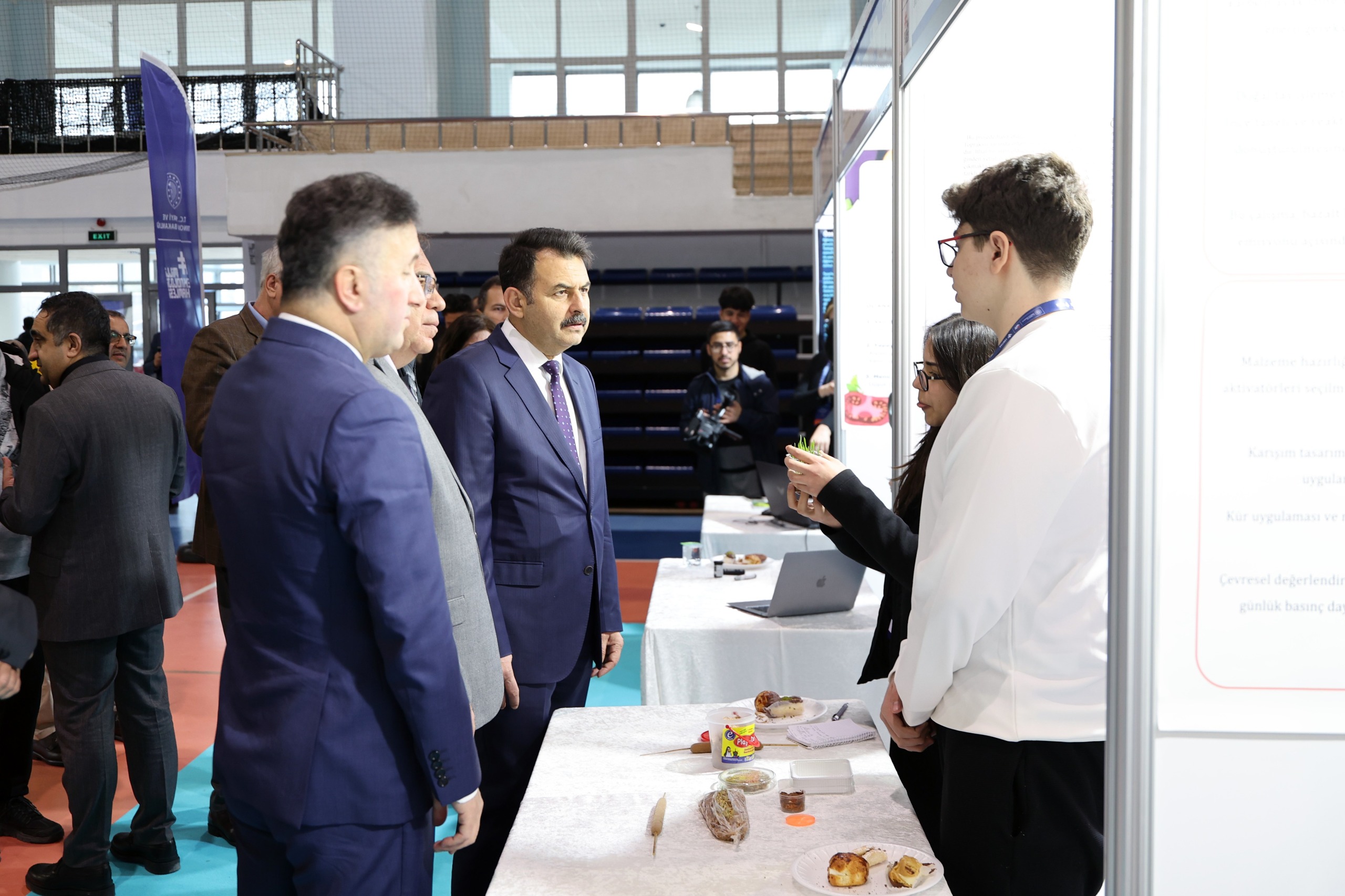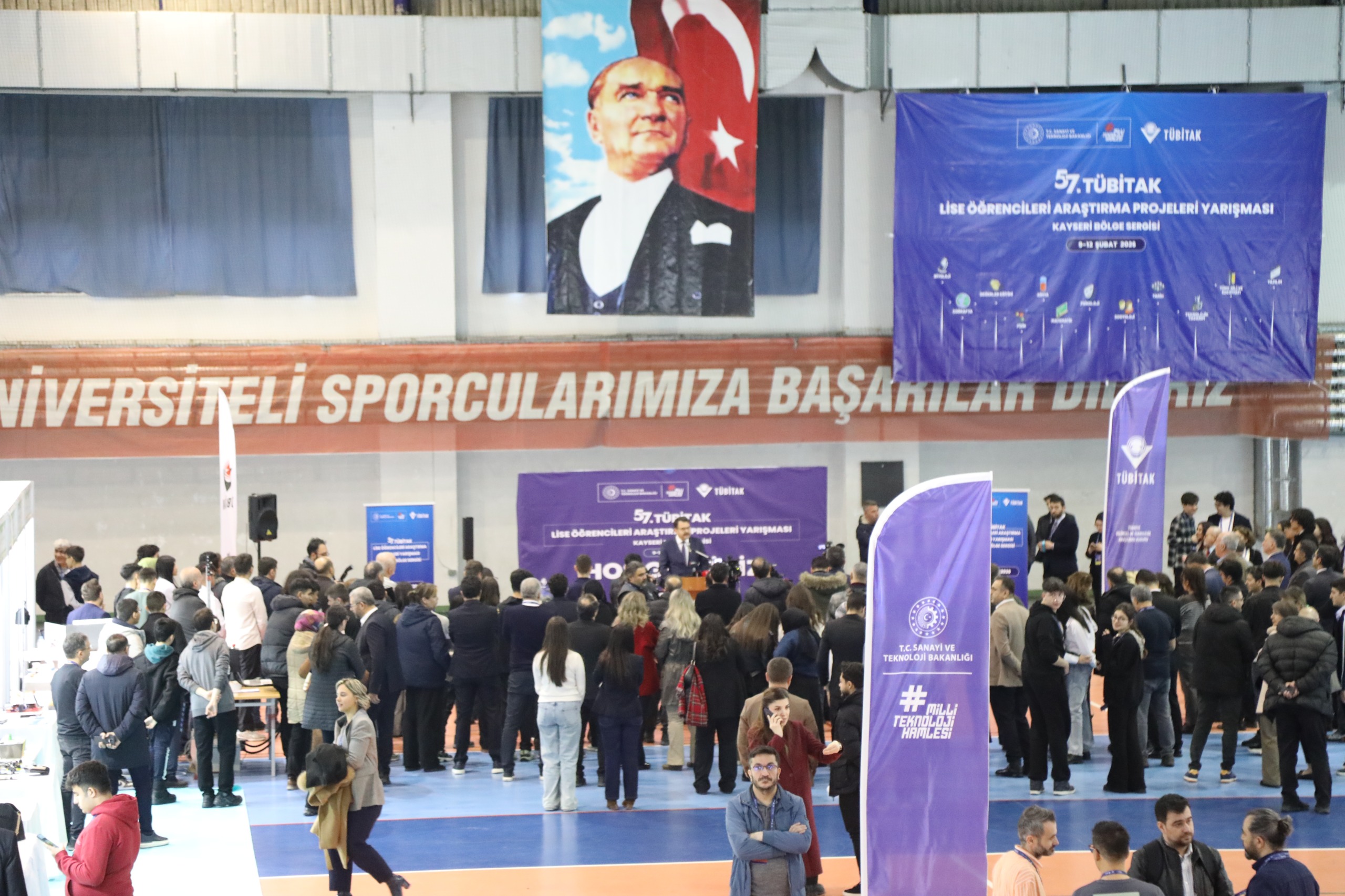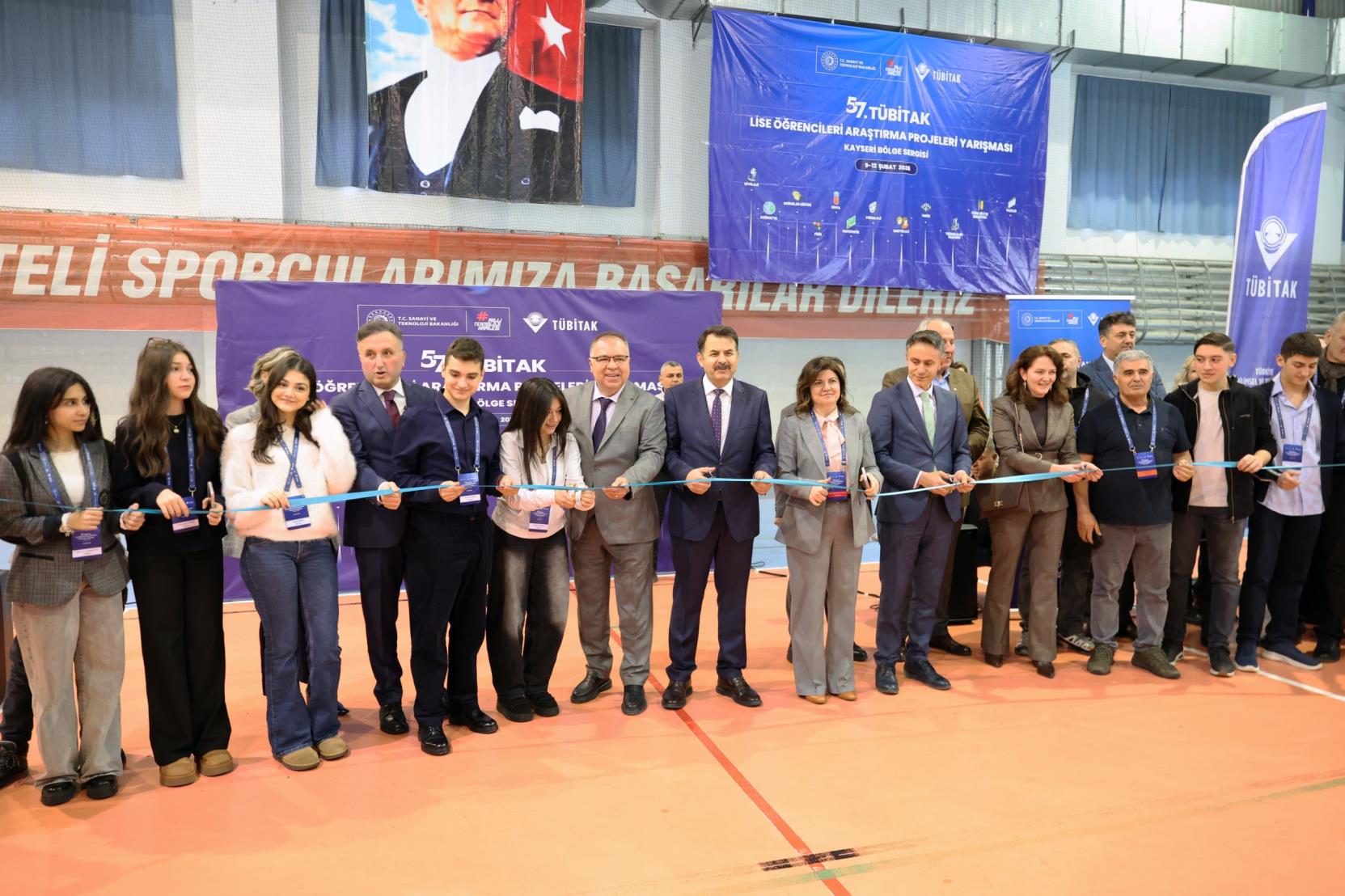 Prof. Dr. Ahmet Bilge Spor Salonu’nda gerçekleştirilen sergi açılış törenine; Kayseri Vali Yardımcısı Mehmet Türköz, Rektör Vekilimiz Prof. Dr. Cevdet Kırpık, İl Milli Eğitim Müdürü Coşkun Esen, TÜBİTAK Kayseri Bölge Koordinatörü Prof. Dr. Emel Kızılkaya Aydoğan, fakülte dekanları, enstitü müdürleri ile çok sayıda akademisyen, öğretmen ve öğrenci katıldı.