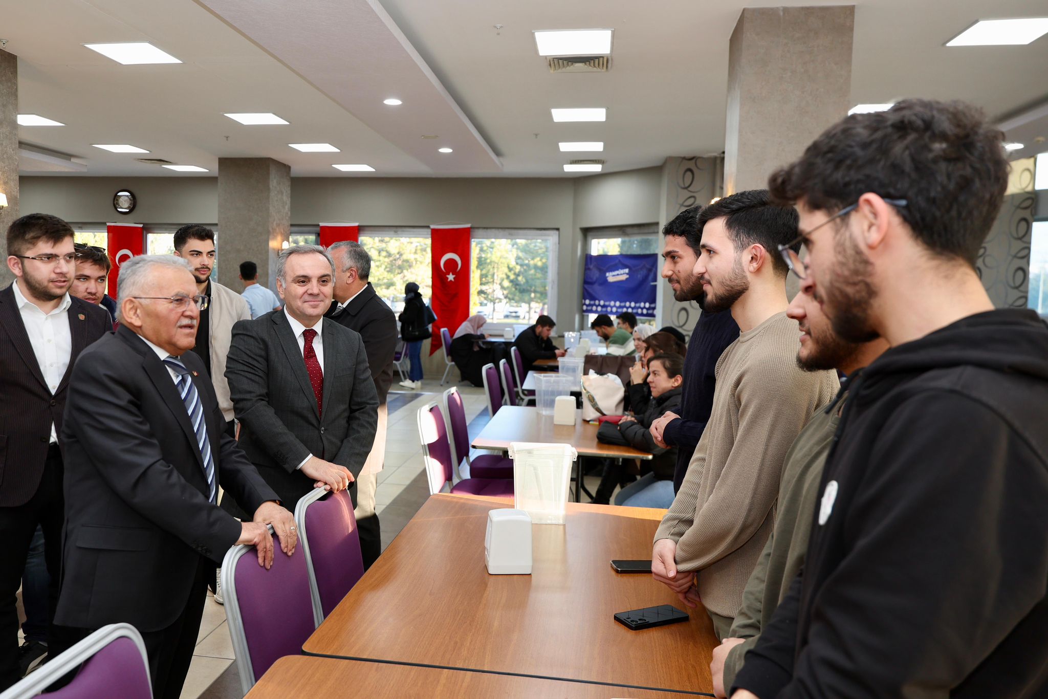 Üniversitemiz Öğrenci Yemekhanesinde düzenlenen programa; Kayseri Büyükşehir Belediye Başkanı Dr. Memduh Büyükkılıç, Rektörümüz Prof. Dr. Fatih Altun, AK Parti Merkez Karar ve Yönetim Kurulu Üyesi Abdurrahman Akyüz, AK Parti Kayseri İl Başkanı Hüseyin Okandan ile öğrenciler katıldı.