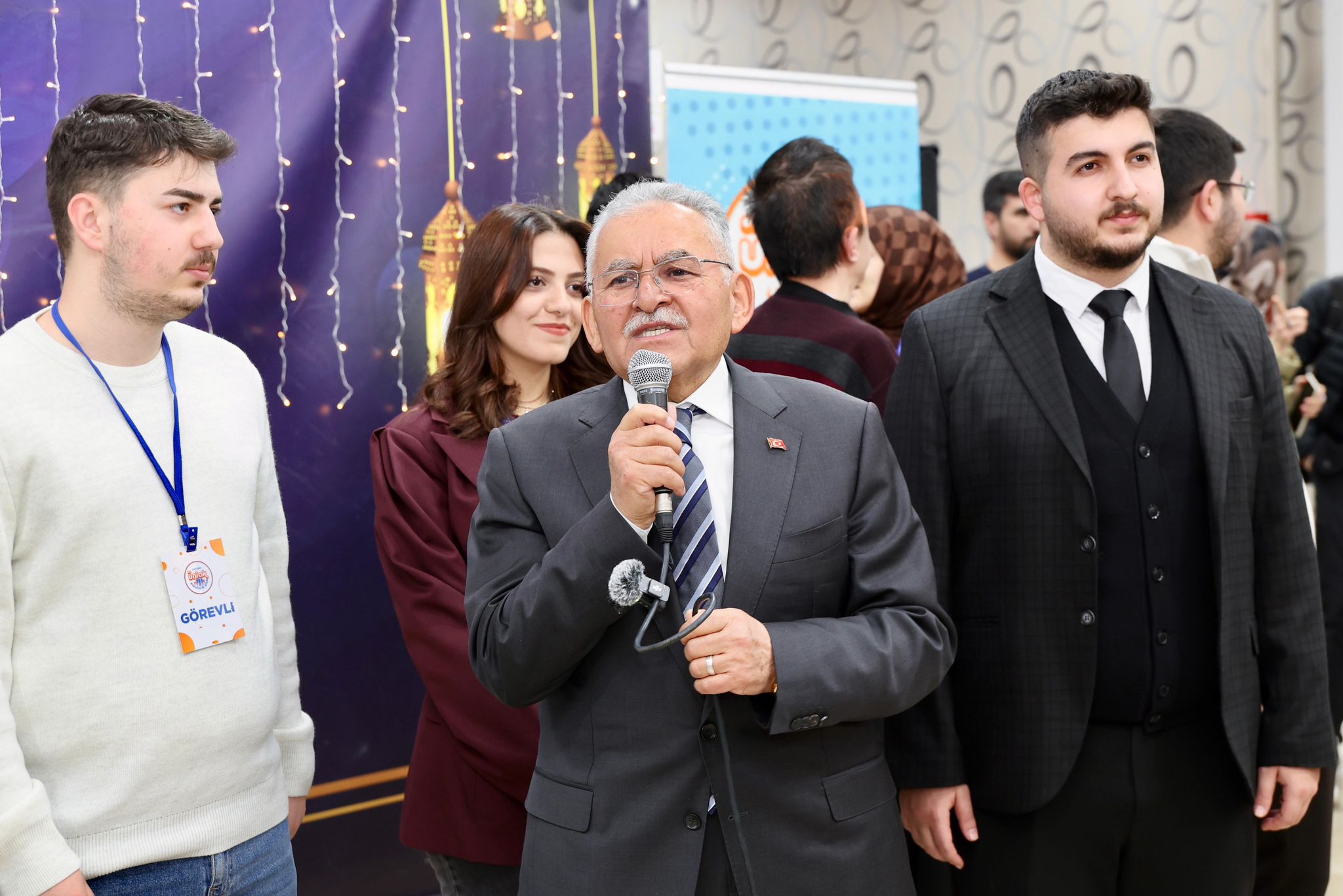 İftar öncesi Kayseri Büyükşehir Belediye Başkanı Dr. Memduh Büyükkılıç, Rektörümüz Prof. Dr. Fatih Altun ve beraberindekiler tek tek masaları dolaşarak öğrenciler ile sohbet etti.