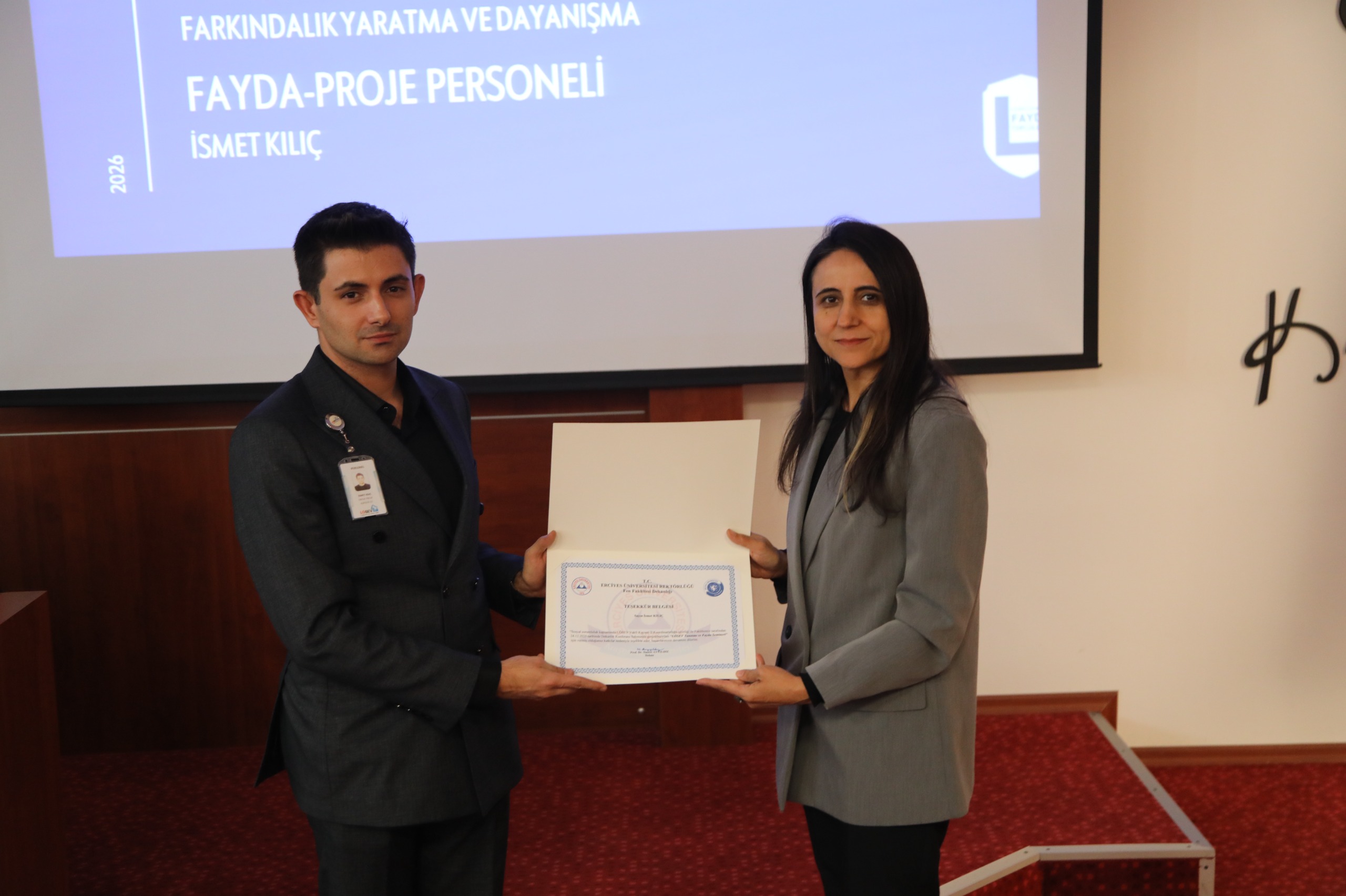 Program, Prof. Dr. Ayşe Toluk’un, Kayseri FAYDA Projesi personeli İsmet Kılıç’a teşekkür belgesi takdim etmesiyle sona erdi.