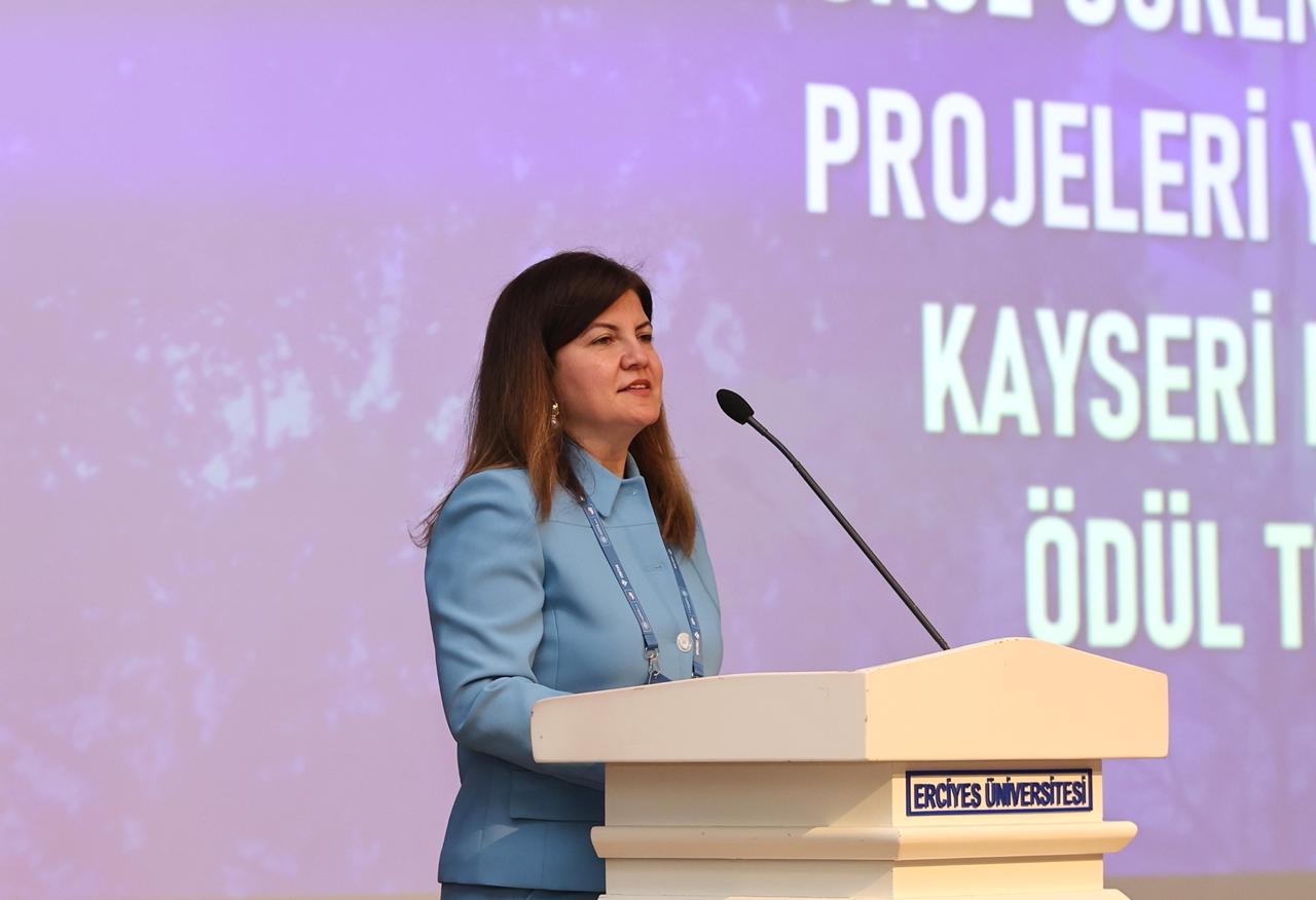 Kayseri Bölge Koordinatörü Prof. Dr. Emel Kızılkaya Aydoğan ise konuşmasında yarışmaya desteklerinden dolayı Üniversitemiz yönetimine teşekkür ederek, “Bir projeye emek vermek, bir fikri sonuna kadar taşımak, vazgeçmemek, işte bunlar hayatın en büyük kazanımlarıdır. Çünkü bilim sadece alkış alanların değil, denemeye devam edenlerin yoludur. Belki bu salonda oturan bir öğrenci yarın dünyada bir ilke imza atacak. Belki biriniz insanlığın en büyük sorunlarından birine çözüm bulacaksınız. Belki de en önemlisi biriniz başka bir çocuğun ‘Ben de yapabilirim’ demesine vesile olacaksınız” şeklinde konuştu.