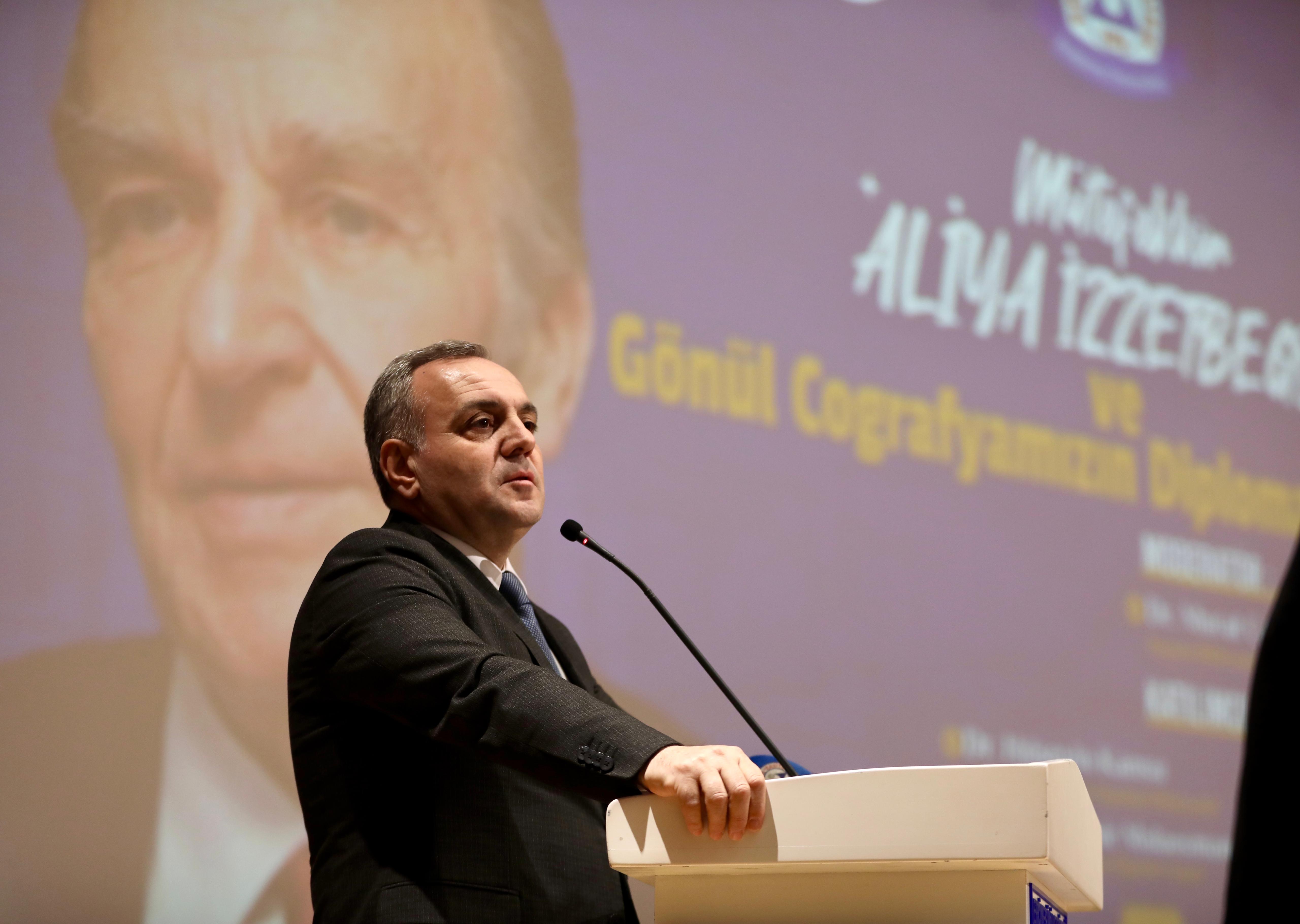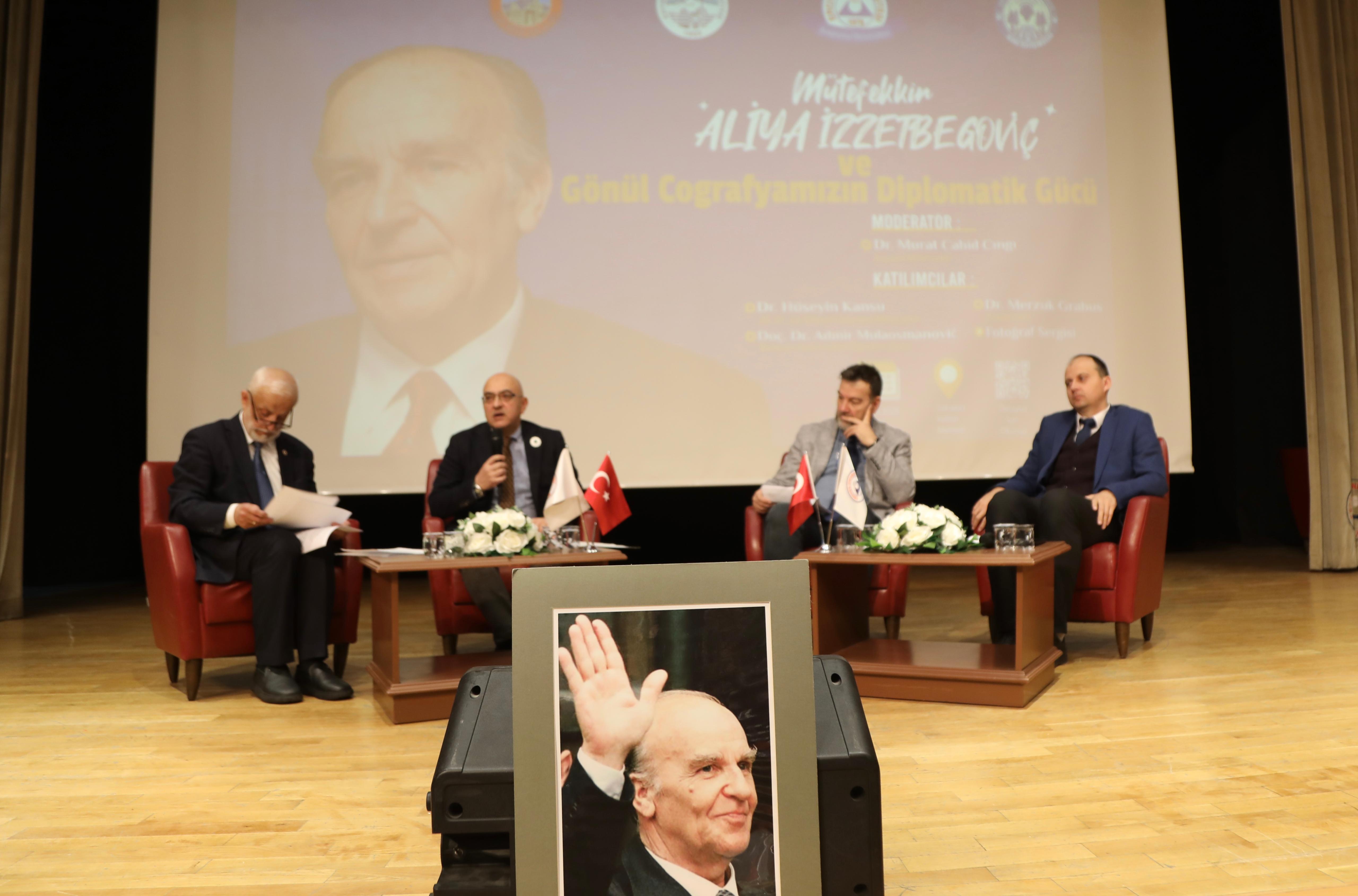 Rektörümüz Prof. Dr. Fatih Altun ise konuşmasında, "Aliya İzzetbegoviç, fikir dünyasında bilgin kişiliği ile gönül coğrafyamızda bize vermiş olduğu mesajlar, bilgiler hiçbir zaman unutulmaması gereken bilgilerdir. Öğrencilerimizin de bu manevi iklimden yararlanmalarını çok önemsiyoruz. Çünkü eğitim hayatı sadece üniversite içerisinde belli derslerde eğitim alarak, diplomaya sahip olmak değil, sahip olduğu sosyal çevre, duyarlı kişilikle devam etmek ve dünya çapında bilge etkisinin bu bilgilerini de paylaşmaktır. Aliya İzzetbegoviç'i rahmetle anıyoruz" diye konuştu.