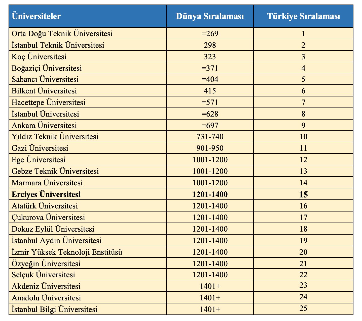 Ülkemizden 20’si devlet, 6’i vakıf olmak üzere toplam 26 üniversitenin yer aldığı sıralamada Üniversitemiz Dünyada 1201-1400 aralığında yer alırken, ülkemizde 15. sırada devlet üniversiteleri arasında 12. Sırada yer alarak önemli bir başarı elde etmiştir.