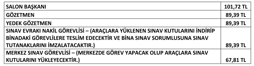 Sınav görevleri ve ücretlere ilişkin bilgiler ile tercih takvimi aşağıdaki gibidir.
