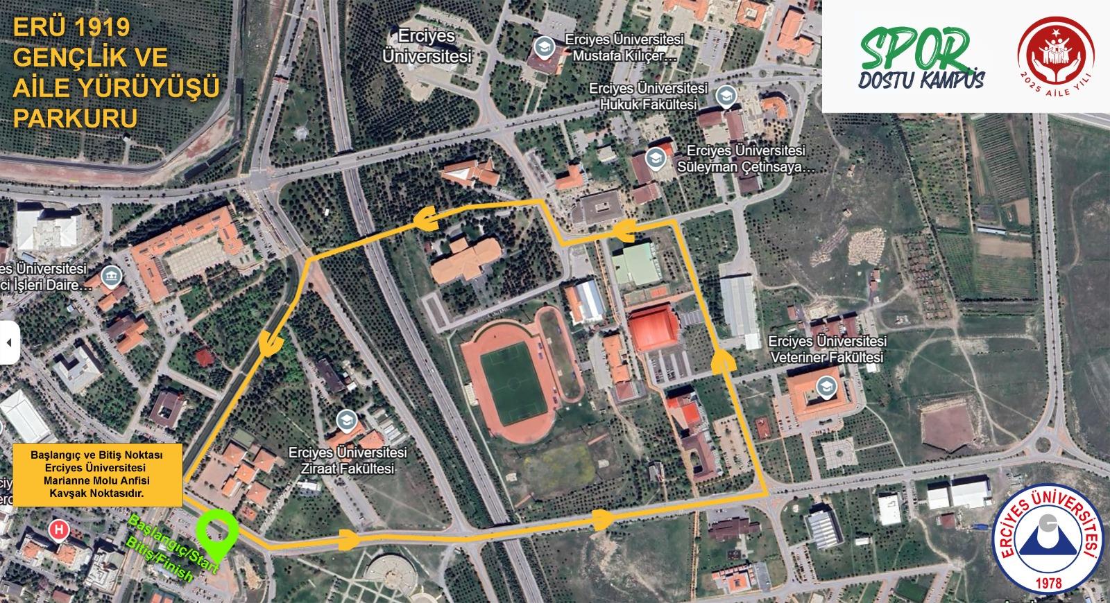 Aşağıda belirtilen yürüyüş güzergahının 19.05.2025 tarihinde saat 11:00 ile 13:00