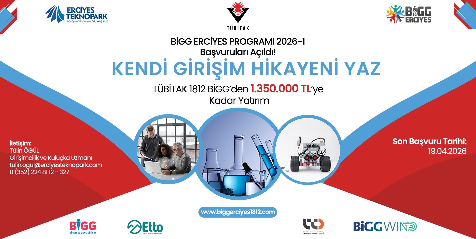 Erciyes Teknopark tarafından yürütülen BİGG Erciyes, teknoloji ve yenilik odaklı iş fikirlerinin, katma değer ve nitelikli istihdam yaratma potansiyeli yüksek girişimlere dönüştürülmesi için fikir aşamasından pazara kadar olan süreçte girişimcilere destek vermekte; iş planı hazırlama eğitimi, mentorluk, iş birliği ağlarına erişim gibi olanaklar sağlanmaktadır.