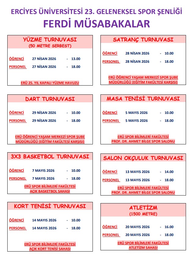 Erciyes Üniversitesi 23. Geleneksel Spor Şenliği Ferdi Müsabakalar