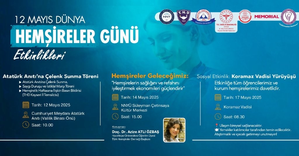 Düzenleyen : NNY Üniversitesi, ERÜ Sağlık Bilimleri Fakültesi, Türk Hemşireler Derneği, Kayseri Devlet Hastanesi, Kayseri Şehir Hastanesi, MEMORIAL