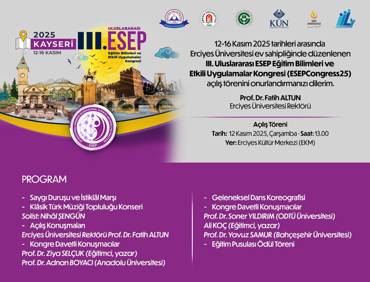 III.Uluslararası ESEP Eğitim Bilimleri ve Etkili Uygulamalar Kongresi (ESEPCongress25)
