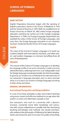 COLLEGE The vision of the School of Foreign Languages is to teach our