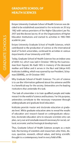 GRADUATE SCHOOLS Erciyes University Graduate School of Health Sciences, which