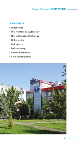 Erciyes University PROSPECTUS DEPARTMENTS • Endodontics • Oral And Maxillofacial Surgery • Oral Diagnosis and Radiology • Orthodontics • Pedodontics • Periodontology • Prosthetic Dentistry • Restorative Dentistry 53