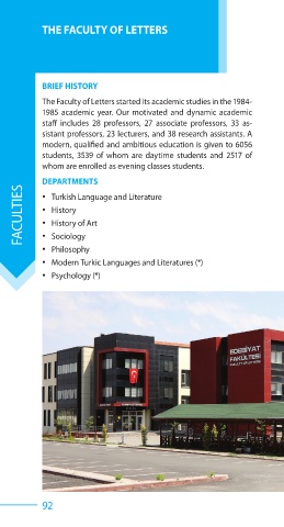 The Faculty of Letters started its academic studies in the 1984-