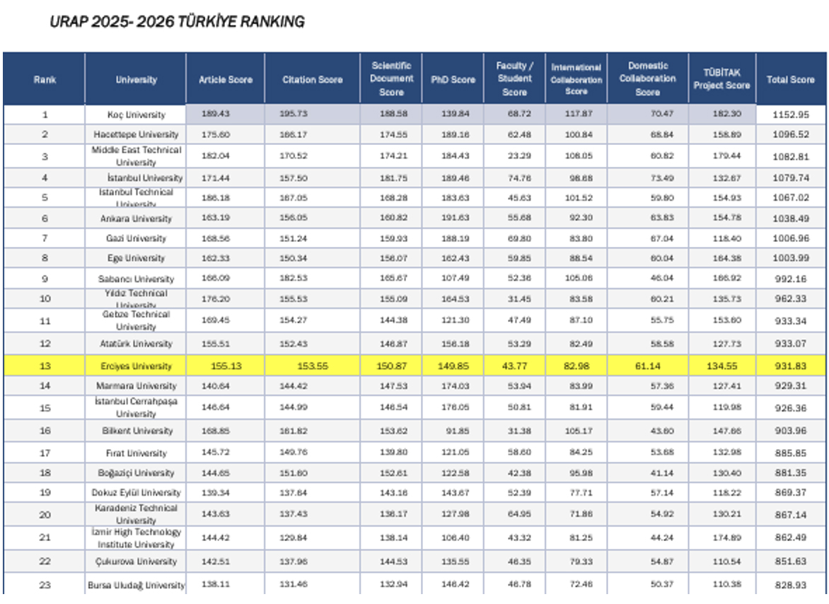 The results of the 2025–2026 Türkiye University Rankings, prepared by URAP (University Ranking by Academic Performance) under the METU Informatics Institute, have been announced.