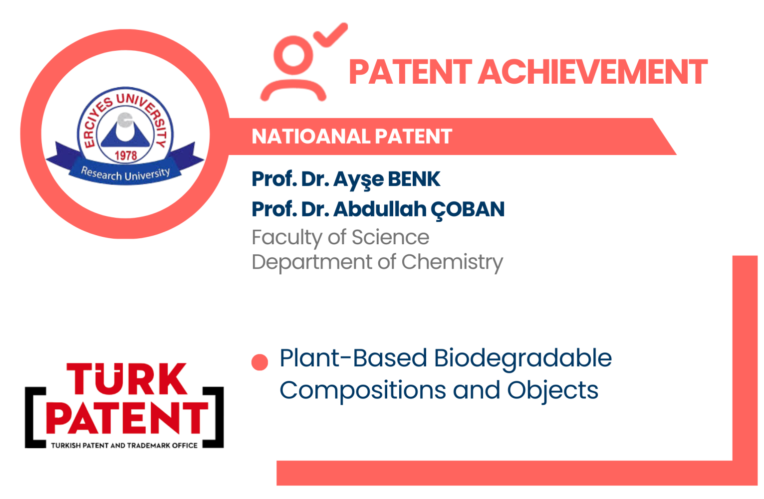 National Patent Achievement by Prof. Dr. Ayşe BENK ve Prof. Dr. Abdullah ÇOBAN