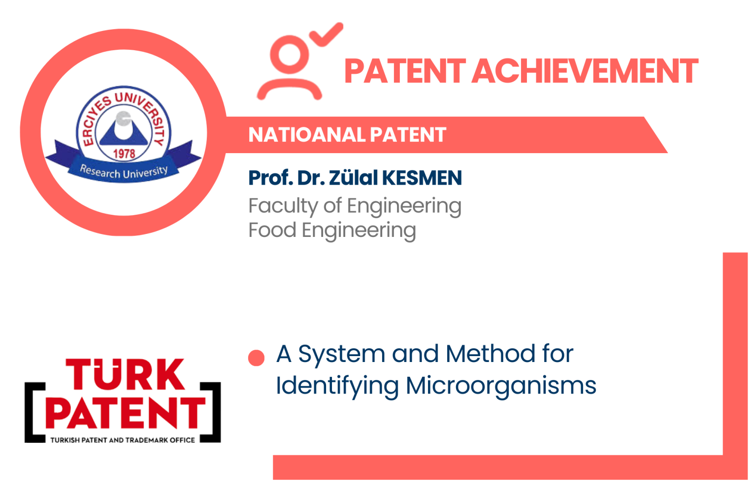 Developed by our university's Faculty of Engineering, Department of Food Engineering faculty member Prof. Dr. Zülal KESMEN, Asst. Prof. Mine ERDEM BÜYÜKKİRAZ, a faculty member from Cappadocia University, and Dr. Esra ÖZBEKAR, a graduate of our Institute of Science, the national patent titled "A System and Method for Identifying Microorganisms," has been registered by the Turkish Patent and Trademark Office.