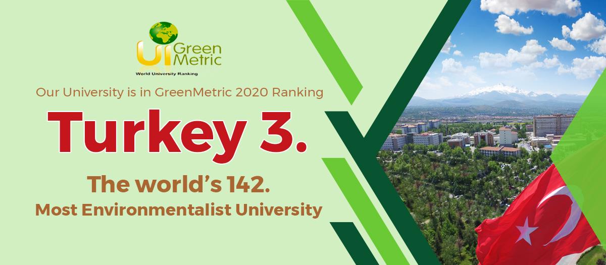 2020 UI GreenMetric World University Ranking Results, evaluating world universities in the fields of sensitivity to the environment, energy, wastes, management of transportation and sustainability, were announced. Our University became 142nd among world universities in the evaluation list of 922 universities and 3rd in the ranking among 56 Turkish universities. In the GreenMetric Ranking aiming to drawing attention to the matters concerning sustainability and to create global awareness regarding environment consciousness, while our University raised its 2019 total score from 6550 to 7175, it raised its score from 900 to 1200 in the Waste category, from 1175 to 1375 in the Transportation category, and from 1425 to 1500 in the Education and Research category.