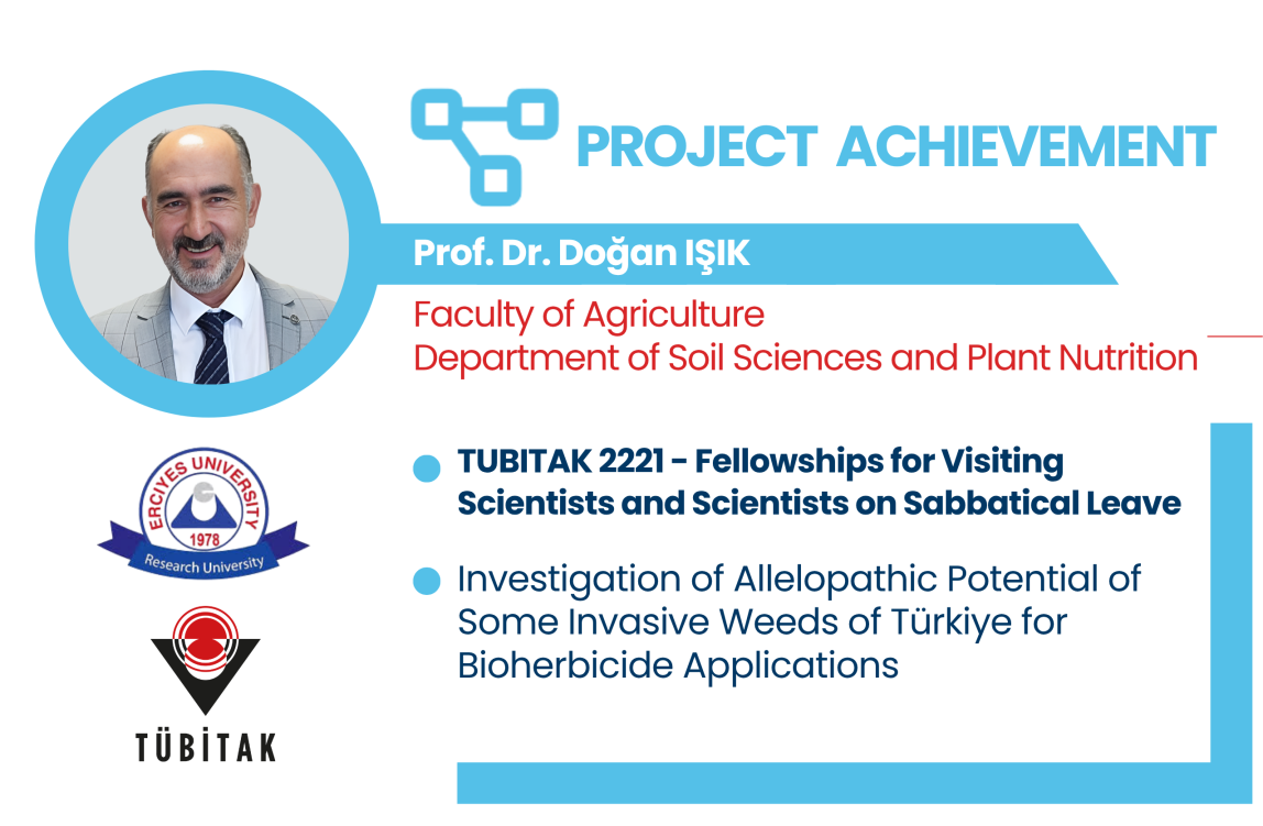 Prof. Dr. Doğan IŞIK, a faculty member in the Soil Science and Plant Nutrition Department of our university's Faculty of Agriculture, has been awarded funding for his research proposal, "Investigation of Allelopathic Potential of Some Invasive Weeds of Türkiye for Bioherbicide Applications." This proposal has been awarded funding under the TÜBİTAK 2221 - Fellowships for Visiting Scientists and Scientists on Sabbatical Leave and Dr. Rahamdad KHAN has been invited as a researcher.