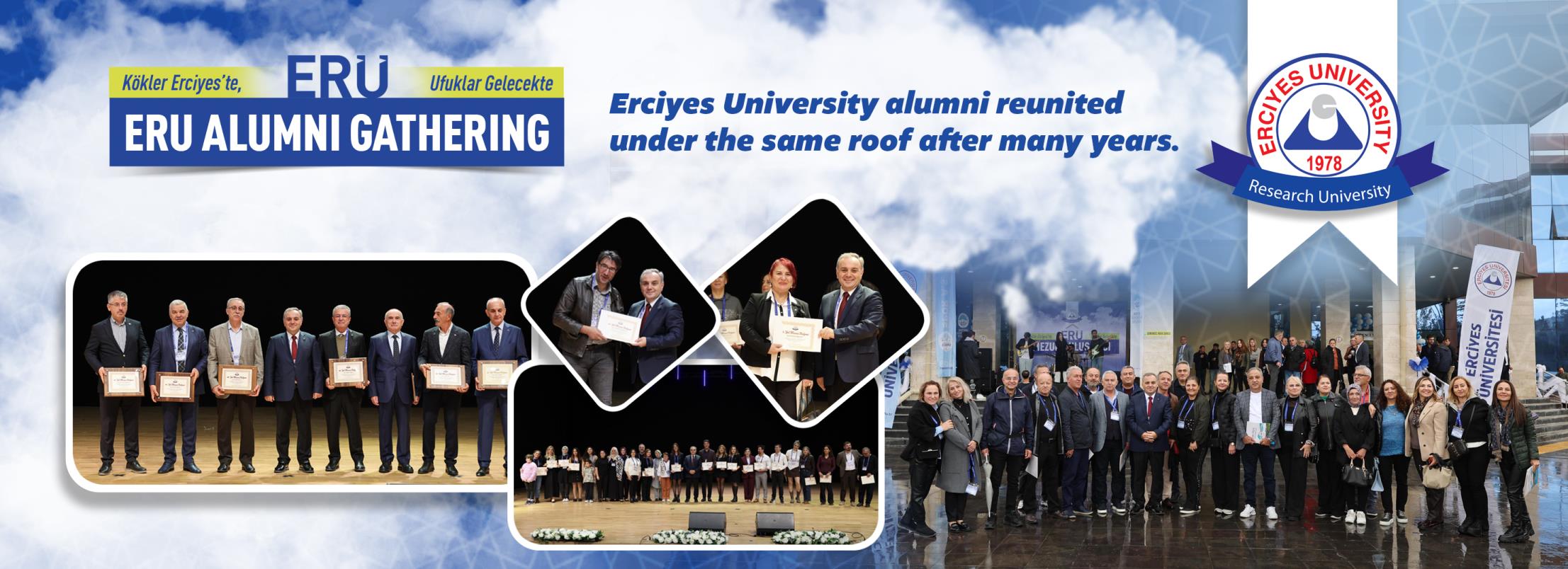 The program was attended by AK Party Kayseri Deputy Şaban Çopuroğlu, ERU Rector Prof. Dr. Fatih Altun, Vice Rectors Prof. Dr. Oktay Özkan, Prof. Dr. M. Hakan Poyrazoğlu, and Prof. Dr. Cevdet Kırpık, Secretary General Prof. Dr. İbrahim Narin, Deputy Secretaries General Prof. Dr. Afşın Alper Cerit and Dr. Oktay Musa Kayırga, senate members, faculty deans, ERU alumni celebrating their 10th, 20th, 30th, 35th, and 40th anniversaries and beyond, and their families.