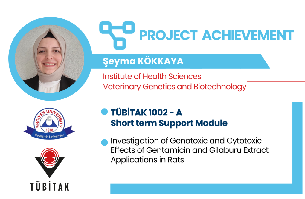 The project titled “Investigation of Genotoxic and Cytotoxic Effects of Gentamicin and Gilaburu Extract Applications in Rats,” led by Şeyma KÖKKAYA, a PhD student at the Institute of Health Sciences, Department of Veterinary Genetics and Biotechnology, has been awarded funding by TÜBİTAK under the TÜBİTAK 1002-A Short-term Support Module. The project team includes Prof. Dr. Korhan ARSLAN, from the ERU Department of Zootechnics and Animal Nutrition of the Faculty of Veterinary Medicine, as advisor Prof. Dr. Bilal AKYÜZ Assoc. Prof. Dr. Fadime DALDABA, from the ERU Department of Zootechnics and Animal Nutrition of the Faculty of Veterinary Medicine Prof. Dr. Öznur ASLAN and Assist. Prof. Dr. İlknur KARACA BEKDİK from the ERU Department of Clinical Sciences of the Faculty of Veterinary Medicine and Assoc. Prof. Dr. Esra BALCIOĞLU from the ERU Department of Basic Medical Sciences of the Faculty of Medicine as researchers.