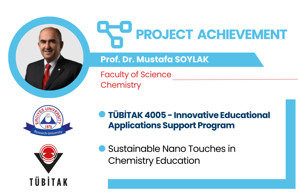 The project titled “Sustainable Nano Touches in Chemistry Education," led by Prof. Dr. Mustafa SOYLAK from the ERU Department of Chemistry of the Faculty of Science, has been awarded funding by TÜBİTAK under the TÜBİTAK 4005 - Innovative Educational Applications Support Program.