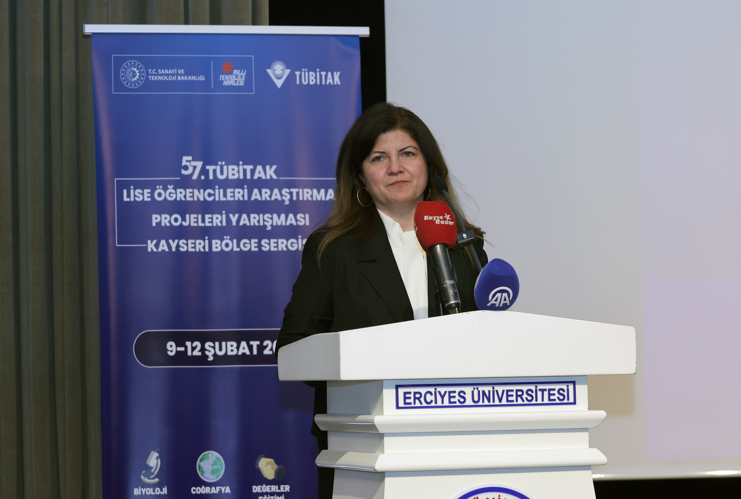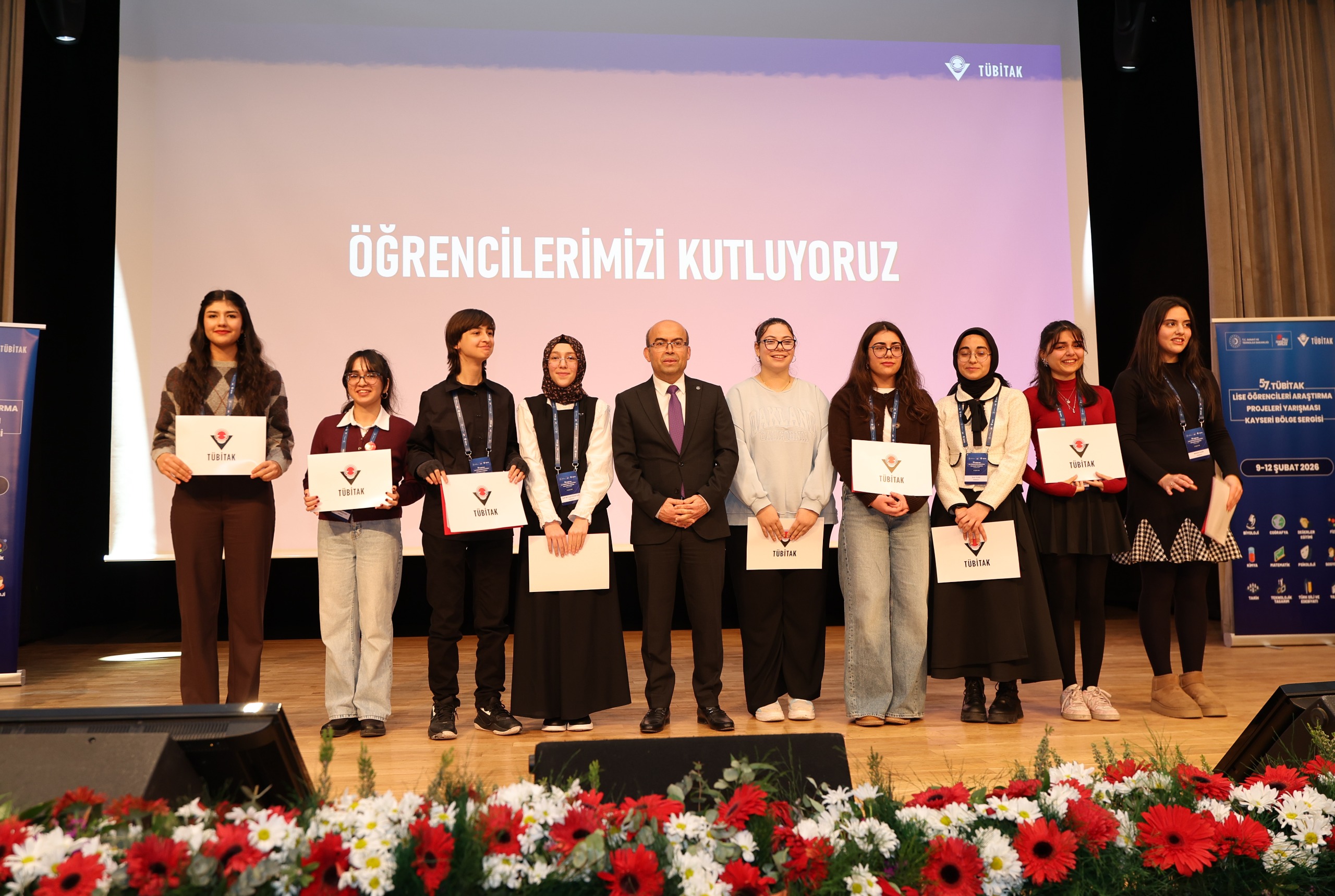 TÜBİTAK Kayseri Bölge Koordinatörü Prof. Dr. Emel Kızılkaya Aydoğan da konuşmasında yarışmaya katılan öğrenciler tebrik ederek, şunları kaydetti: “Bugün burada yalnızca dereceye giren projeleri değil, emeği, azmi ve bilime duyulan inancı alkışlıyoruz. Bu süreçte ortaya konulan her fikir, yapılan her çalışma ülkemizin geleceğine atılmış kıymetli bir adımdır. Sonuç ne olursa olsun bu yarışmaya katılma cesareti gösteren tüm öğrencilerimizi gönülden tebrik ediyorum.”