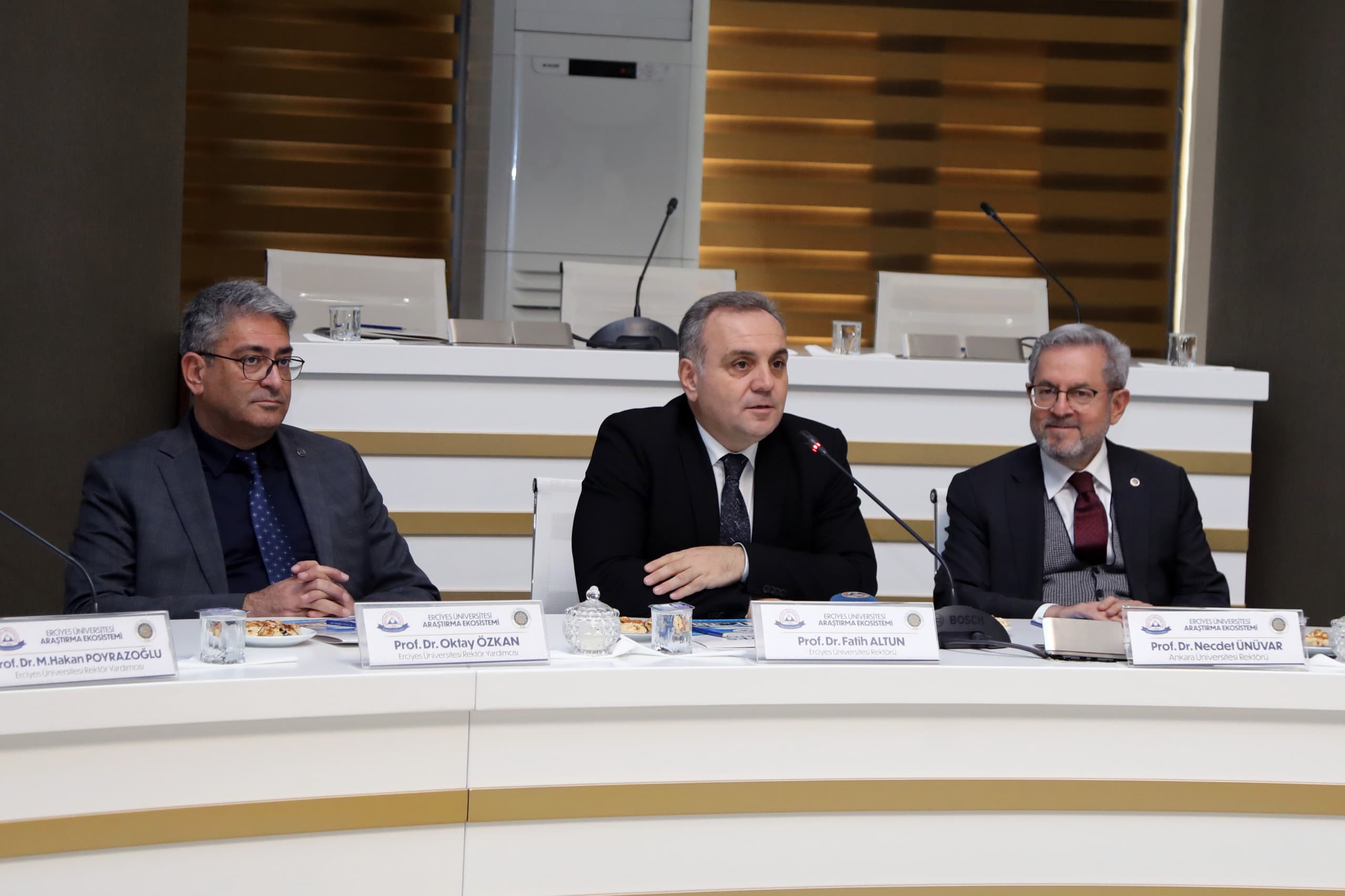 Ziyaret kapsamında ilk olarak Rektörlük Senato Salon’unda Araştırma Ekosistemi hakkında görüş alışverişi amacıyla toplantı düzenlendi.