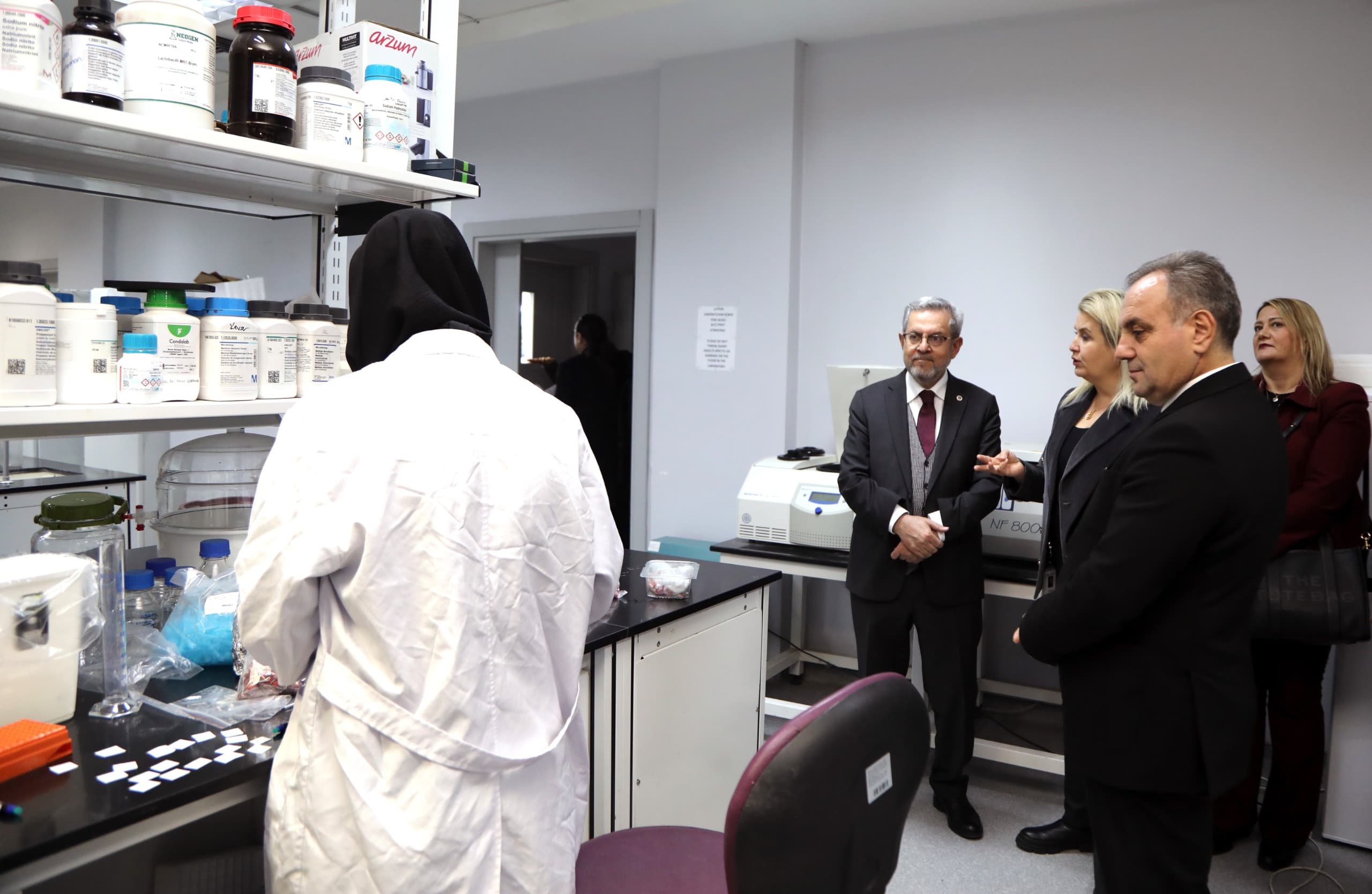 Toplantının ardından Rektörümüz Prof. Dr. Altun ve Rektör Prof. Dr. Ünüvar ile beraberindeki heyet Üniversitemiz Genom ve Kök Hücre Merkezi'ni ziyaret ederek, yürütülen faaliyetler hakkında Merkez Müdürü Prof. Dr. Serpil Taheri’den, merkezde yürütülen faaliyetler hakkında bilgi aldılar.