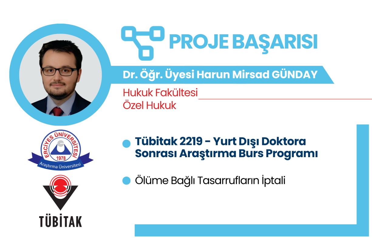 TÜBİTAK-2219 Yurt Dışı Doktora Sonrası Araştırma Burs Programı kapsamında, yürütücülüğünü Üniversitemiz Hukuk Fakültesi Özel Hukuk Bölümü Dr. Öğr. Üyesi Harun Mirsad GÜNDAY'ın yapacağı "Ölüme Bağlı Tasarrufların İptali" başlıklı proje destek almaya hak kazanmıştır. Proje, Heidelberg Ruprecht-Karls Üniversitesi (Almanya) bünyesinde Prof. Dr. Andreas Piekenbrock'ın danışmanlığında gerçekleştirilecektir.