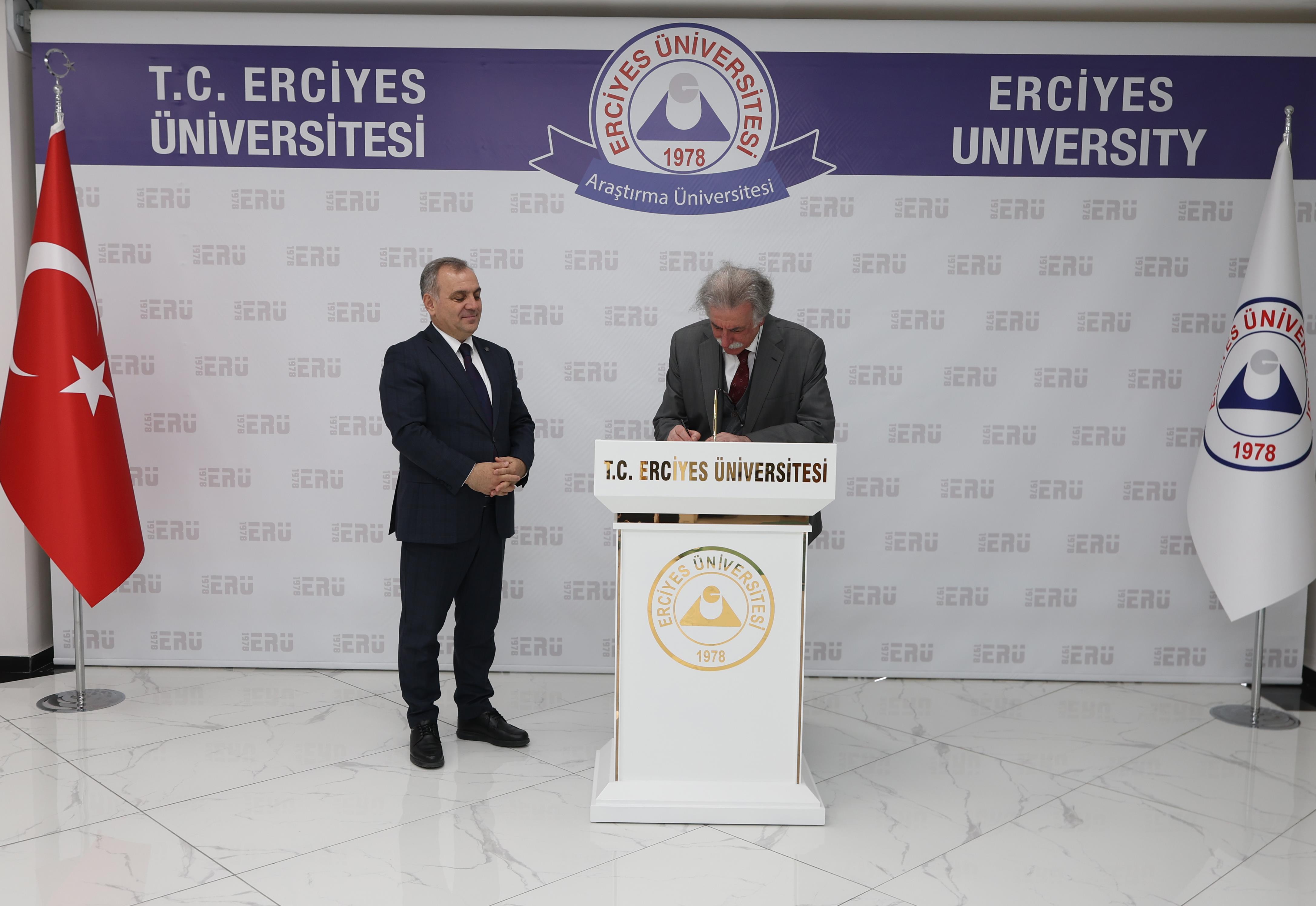Rektörlük makamında gerçekleşen ziyarette Prof. Dr. Fahrettin Keleştemur ve Rektörümüz Prof. Dr. Fatih Altun karşılıklı görüş alışverişinde bulundu.
