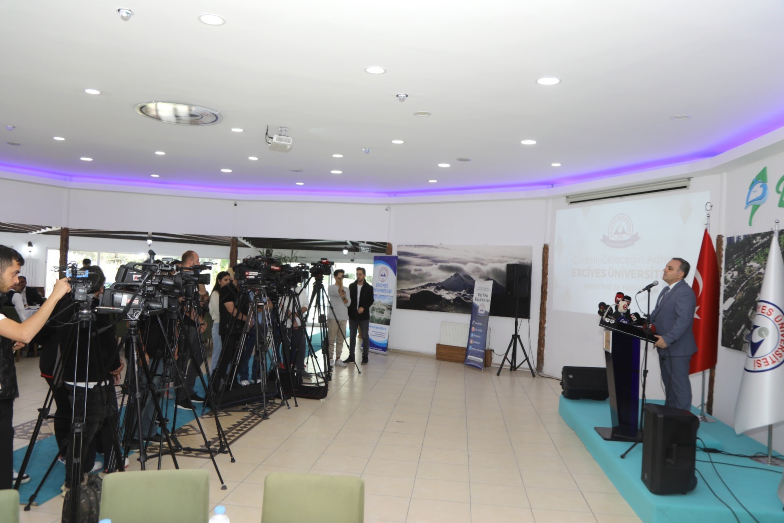 Rektörümüz Prof. Dr. Fatih Altun’un Botanik Alakart Restoranda düzenlediği basın toplantısına; Rektör Yardımcılarımız Prof. Dr. Oktay Özkan, Prof. Dr. M. Hakan Poyrazoğlu, Prof. Dr. Hakan Aydın, Genel Sekreterimiz Prof. Dr. İbrahim Narin, Genel Sekreter Yardımcılarımız Doç. Dr. Afşın Alper Cerit ve Zafer Çağlıtalaslıgil, Üniversite Yönetim Kurulu Üyeleri, Kayseri Gazeteciler Cemiyeti Başkanı Metin Kösedağ ile yazılı ve görsel basının temsilcileri katıldı.