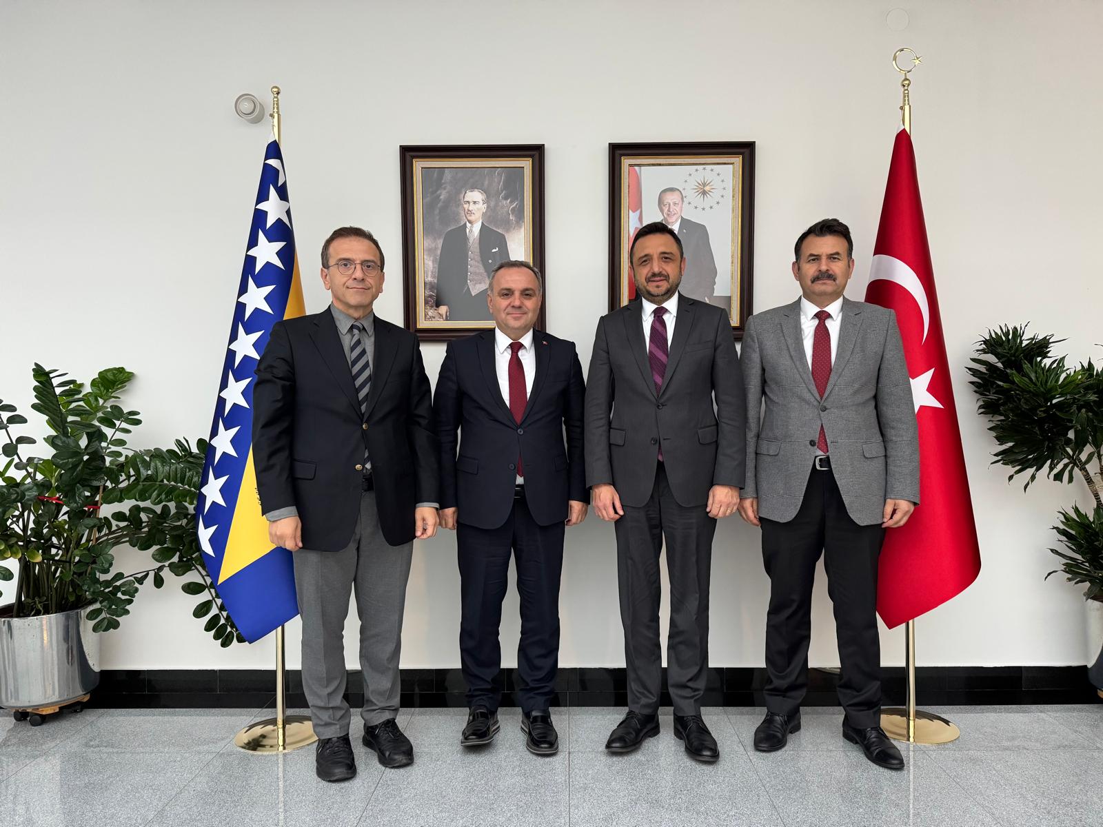 Aliya İzzetbegoviç Vakfı ziyaretinin ardından Saraybosna Büyükelçiliği’ni ziyaret eden Rektörümüz Prof. Dr. Altun, Saraybosna Büyükelçisi Emin Akseki ile bir süre görüştü.