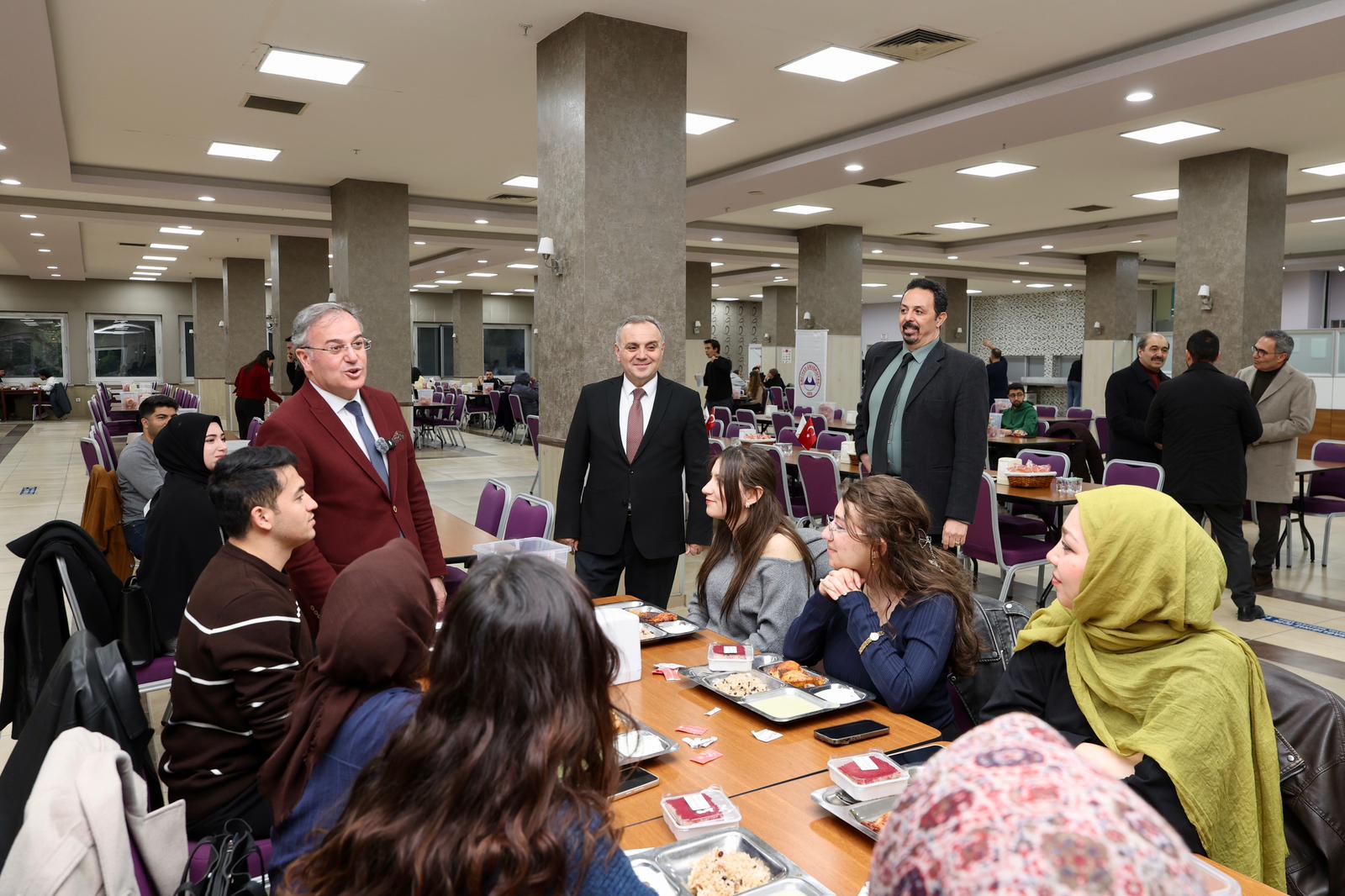 Öğrenci yemekhanemizde düzenlenen iftarda; Rektörümüz Prof. Dr. Fatih Altun ve Hacılar Belediye Başkanı Bilal Özdoğan öğlencilerimiz ile sohbet etti.
