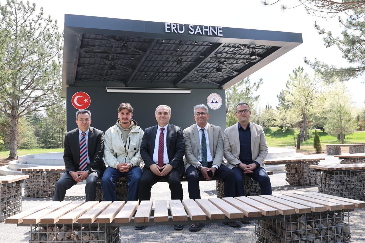 Ziyaretinde kütüphane binasındaki yenilenme çalışmaları hakkında yetkililerden bilgi alan Rektörümüz Prof. Dr. Altun, bir diğer ziyaretini de öğrencilerin konser, tiyatro gibi etkinliklerinde kullanılması için üniversite kampüsüne yapılan ERÜ Sahne’ye gerçekleştirerek, kullanıma açılan sahneyi inceledi.